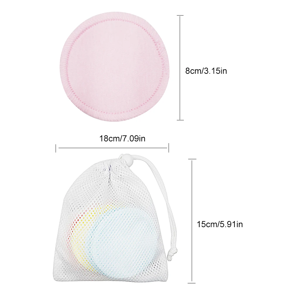 Ткань: три слоя хлопкаМатериал сетчатого мешка: полиэфирная сеткаРазмер: 8 см в диаметреСетчатый мешок размер: 18*15 см/7*5,9 вОсобенности: 1. Высокое качество: коврик для снятия макияжа изготовлен из 99.9% чистого хлопка, с гипоаллергенным, водопоглощающим покрытием, мягкостью и долговечностью.2. Широкий спектр применения: для многих частей лица, таких как средство для макияжа глаз, средство для снятия макияжа лица, тени для век, тушь для ресниц, помада и так далее. Этот ультра-мягкий и чрезвычайно эффективный средство для снятия макияжа используется для мужчин и женщин3. Коврик для снятия макияжа очень пушистый и мягкий, глубоко проникает в поры, успешно удаляет косметику и солнцезащитный крем без какого-либо дискомфорта4. Легко мыть и сушить: с сетчатым мешком для стирки, вы можете бросить их в сетчатый мешок, а затем в стиральную машину.5. Многоразовый, легкий и портативный, простой в использовании, вы можете сэкономить некоторые в дорожных сумках, тренажерных залах или сумочкахУпаковочный лист:
