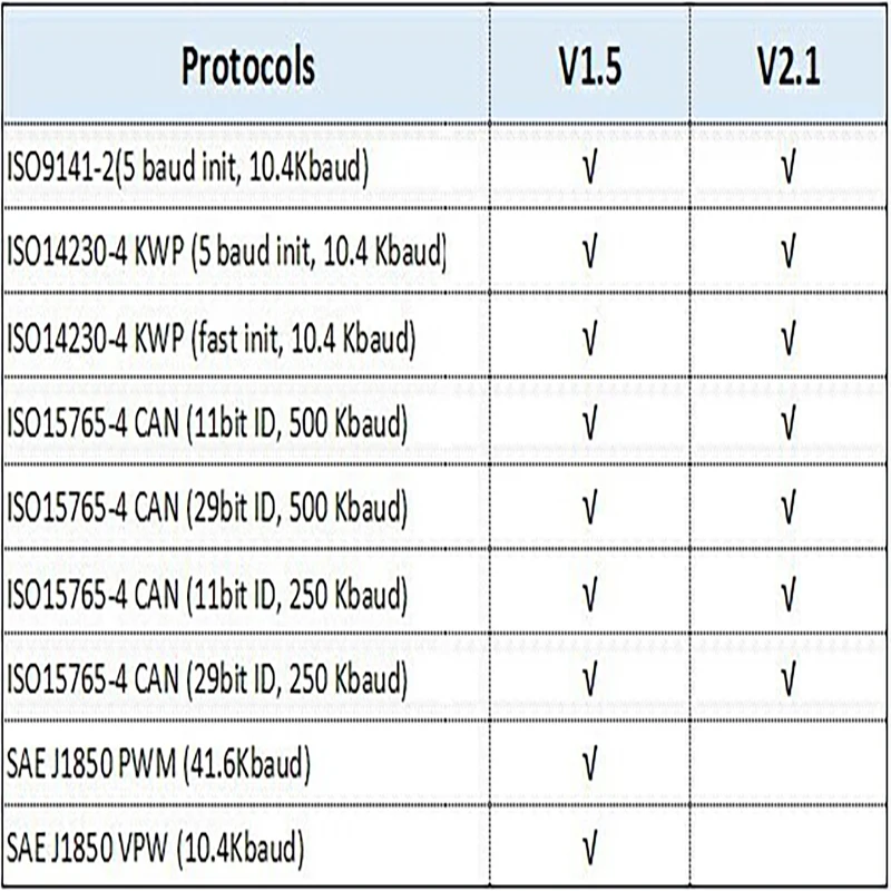 Ответ: Да, оборудование V1.5 является более стабильным, чем V2.1, и получил отзывы от многих покупателей. V1.5 поддерживает больше протоколов и автомобильных брендов.