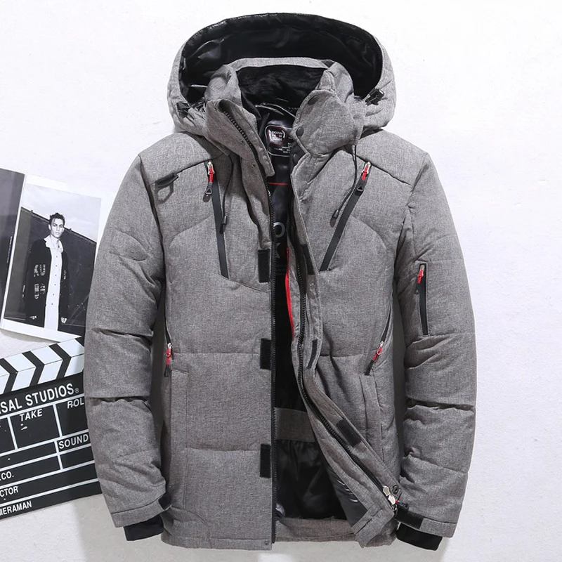 Мужская зимняя одежда на 20 градусов, пальто из белого гусиного пер...
