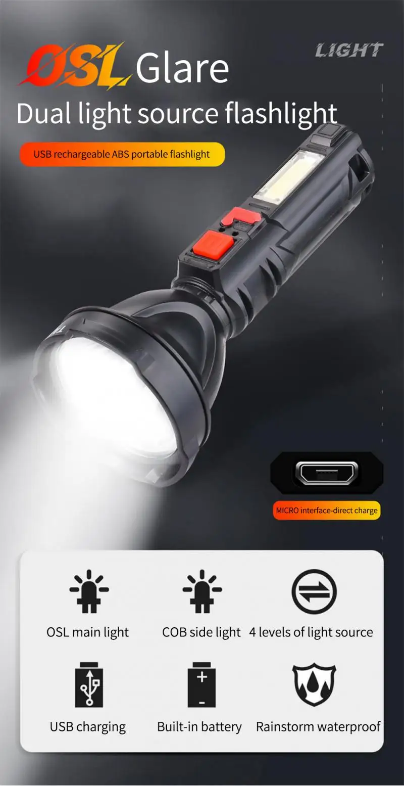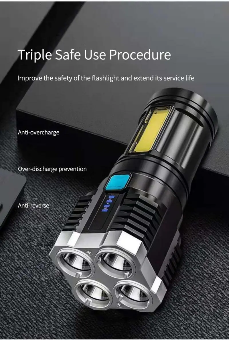 Суперъяркая яркая вспышка с 4 головками, сильный светодиодный светильник с USB, светильник дальнего действия, уличный портативный многофункциональный фонарик, тактический светильник