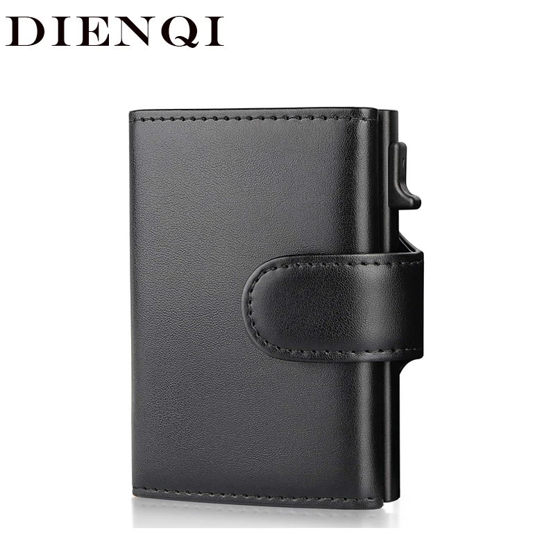 DIENQI Rfid мужские кошельки из натуральной кожи, модный держатель для карт, кошелек в три сложения, сумки для денег, умный тонкий кошелек с карманом для монет