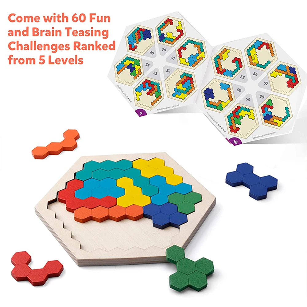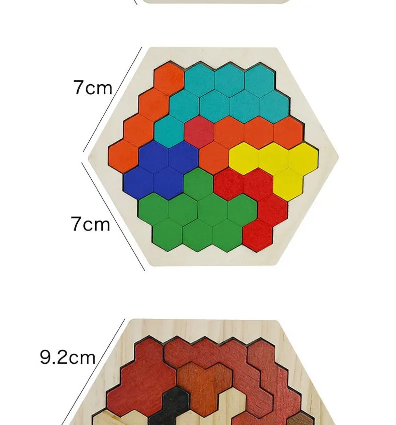 Деревянный шестиугольный пазл, форма, узор, блок, танграмма, голово...