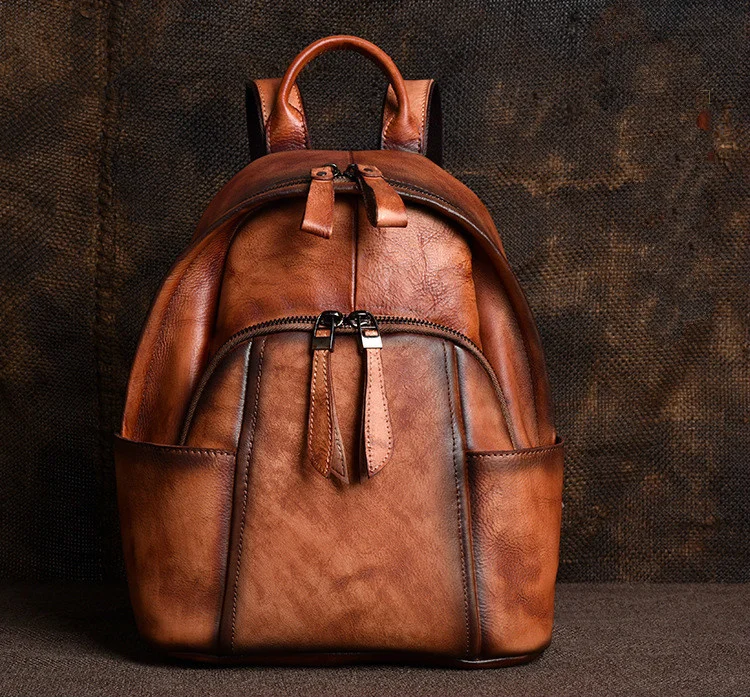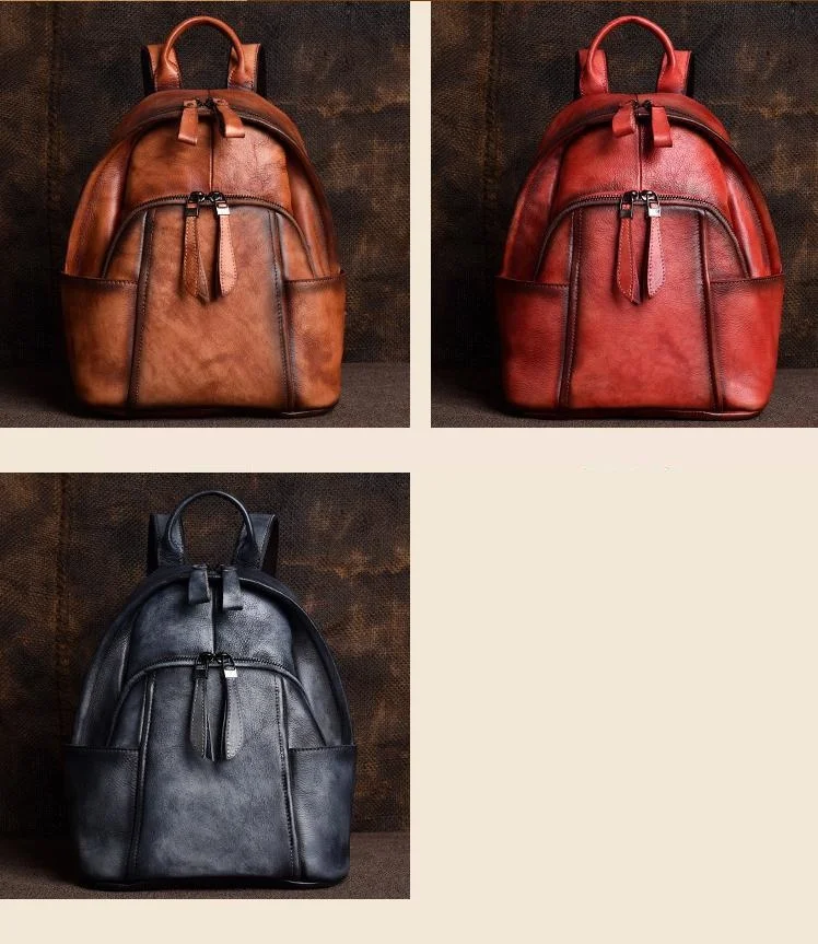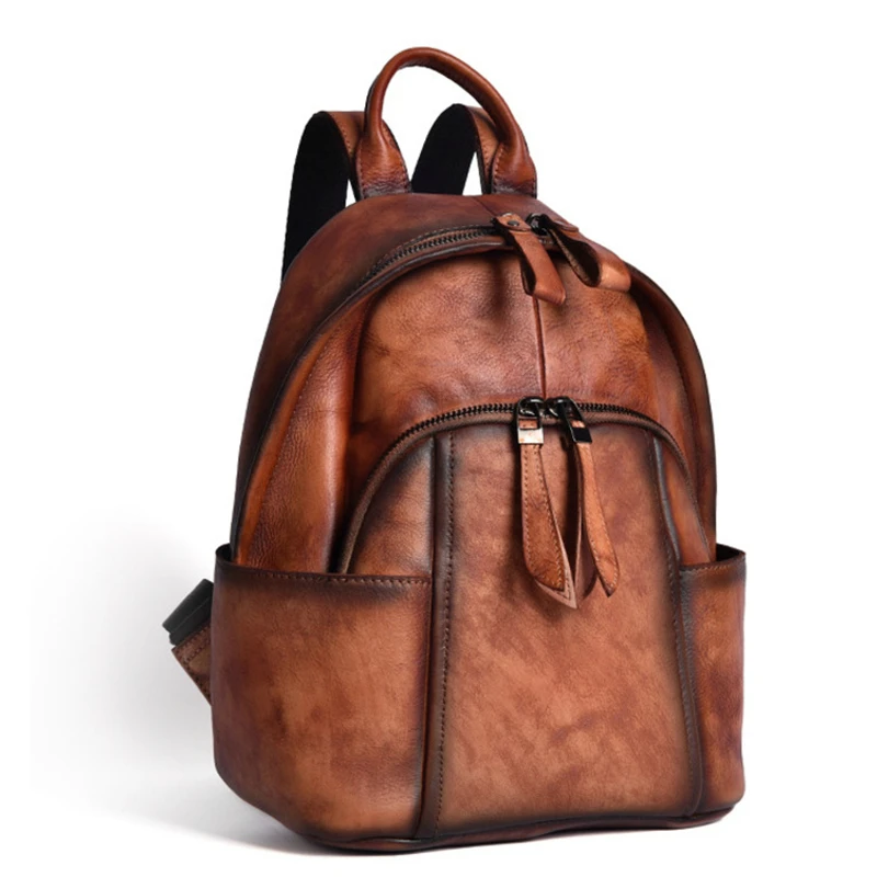 Женский рюкзак из натуральной кожи, винтажный маленький ранец из во...