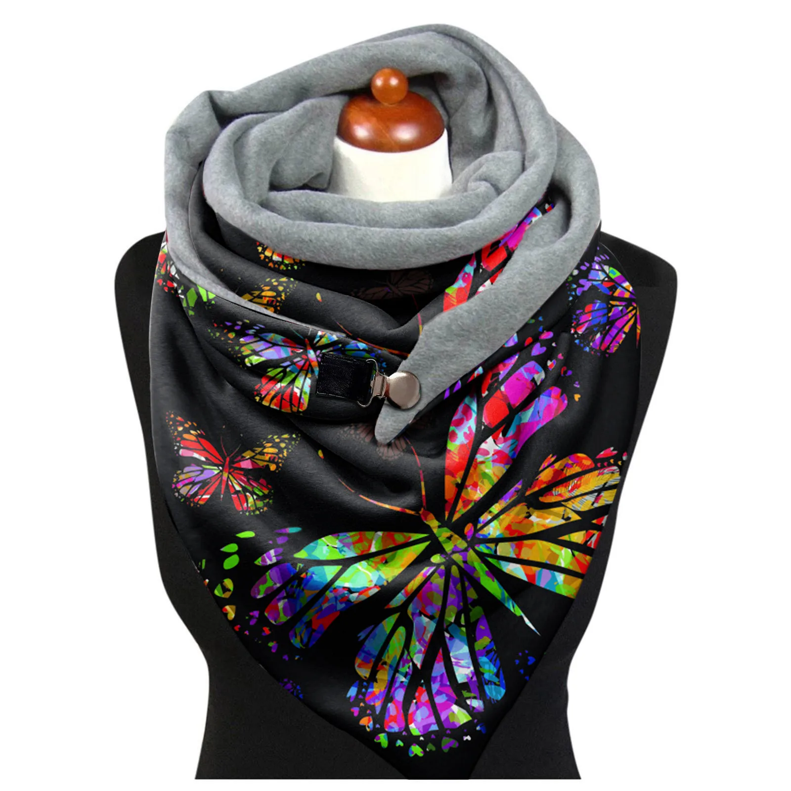 Зимние теплые Шарфы, модный шарф с 3D-принтом бабочки, женские квадратные Шарфы с застежкой на пуговицах, женский шарф с графическим принтом