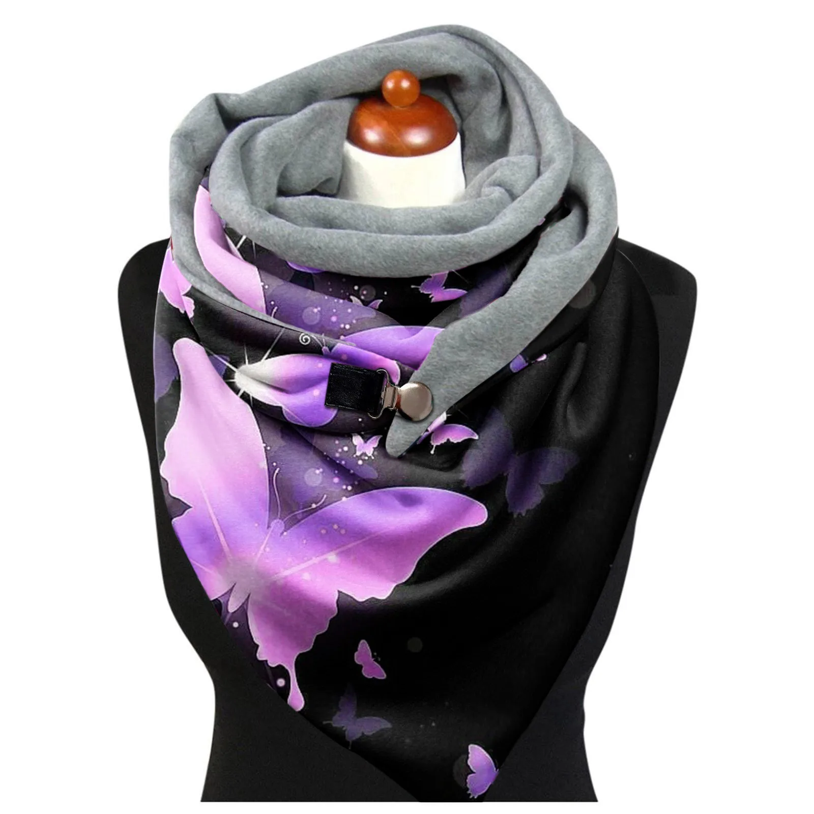 Женская мода бабочка печать Кнопка мягкая обертка повседневные теплые шарфы шали