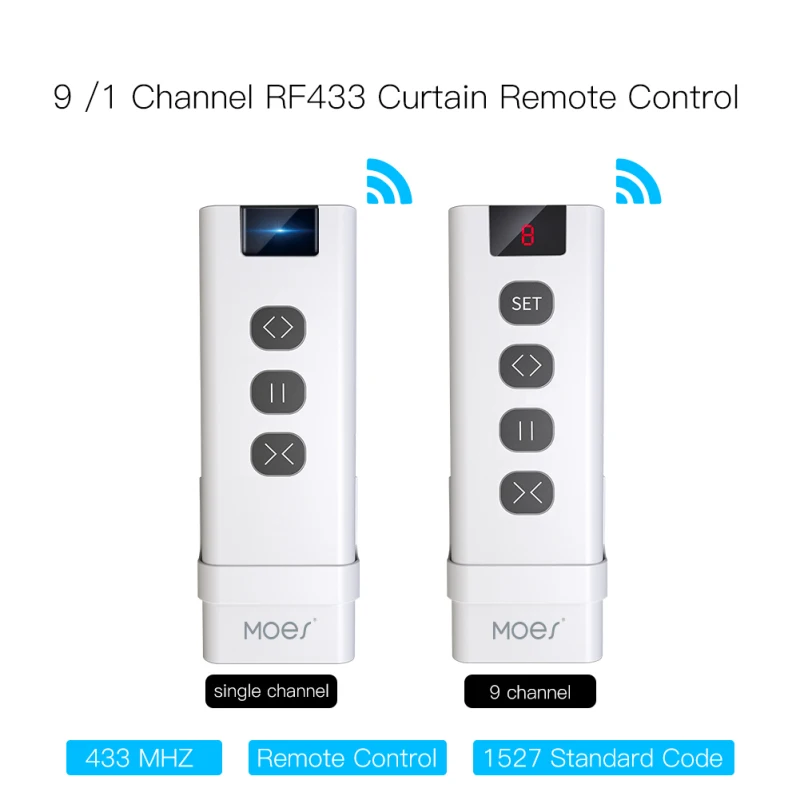 1,9 канал RF433 частота пульт дистанционного управления предназначен для отдельно контролировать наши занавес переключатель и занавес модуль автоматического включения света намного проще путь с максимальным регулируемом Кол-во Девять; легко достичь другого контроля на все шторы для дома без помех после успешного сопряжения, особенно подходит для старых.