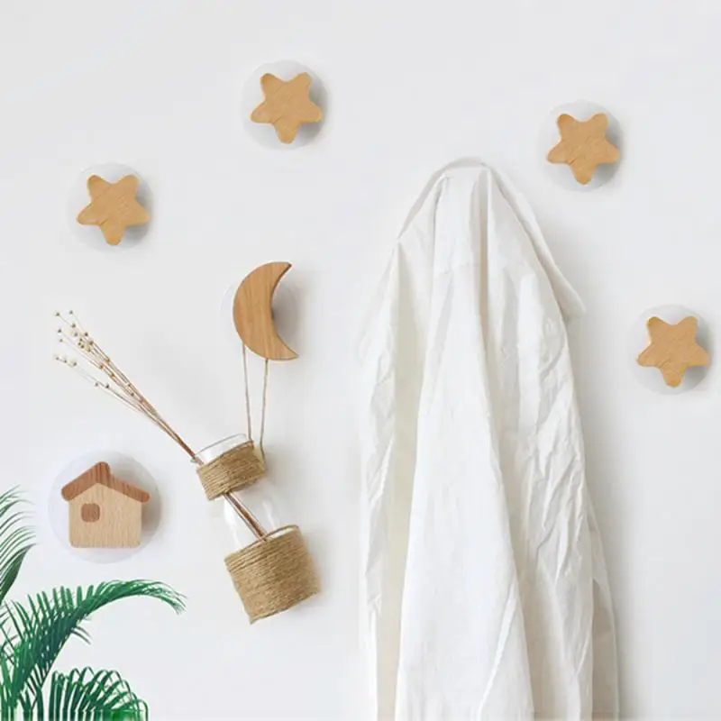 Декоративные крючки для детской комнаты, деревянные настенные крючки, крючок для ключей со звездами, современный креативный крючок для пальто, настенная вешалка, крючки для сумок для подвешивания