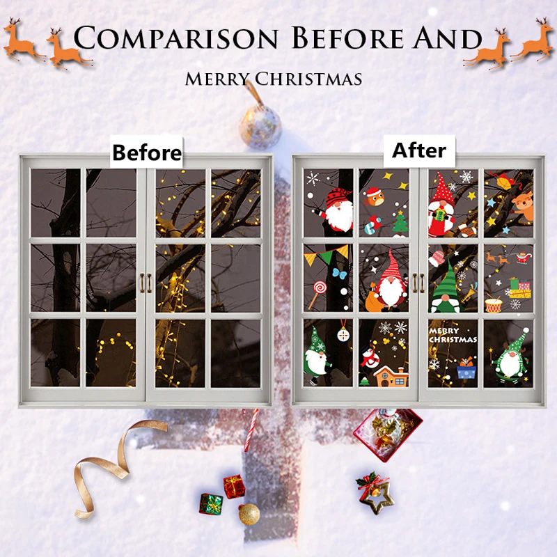 Рождественские наклейки на окна, стеклянные статические наклейки дл...
