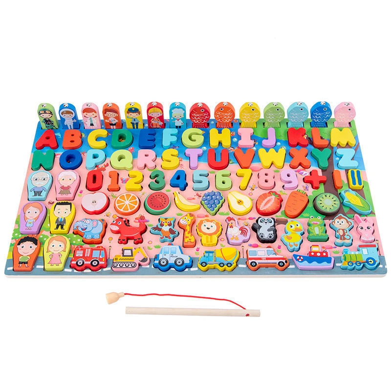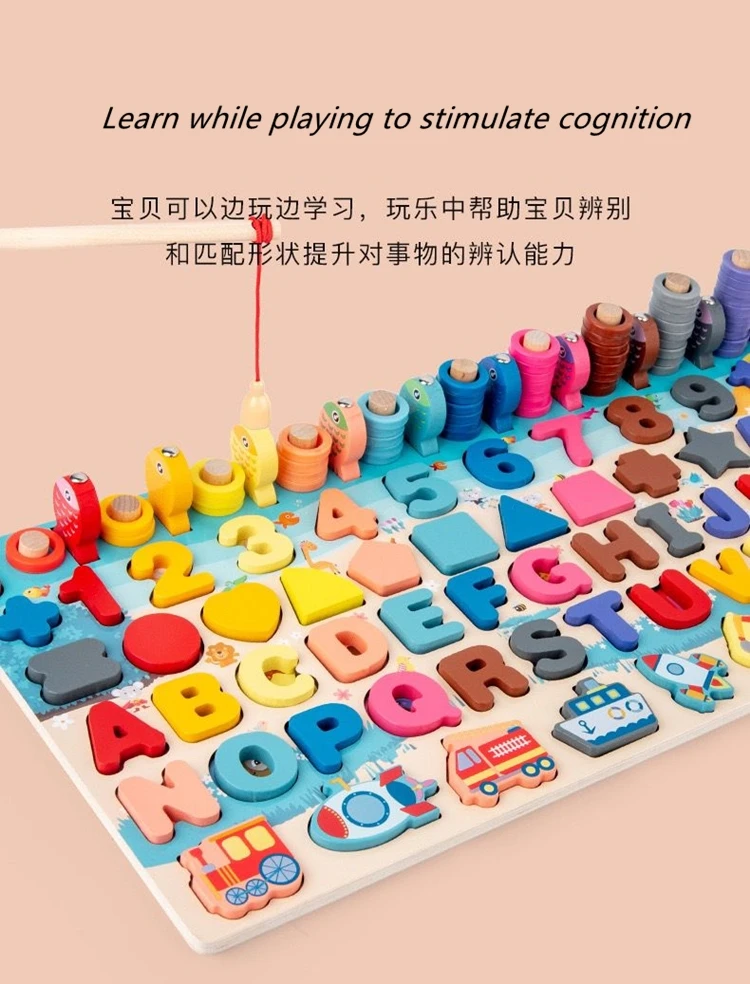 Игрушка Монтессори с геометрическим подсчетом, Обучающие деревянные игрушки Монтессори, Детская занятая математическая доска для рыбалки, детский деревянный Дошкольный