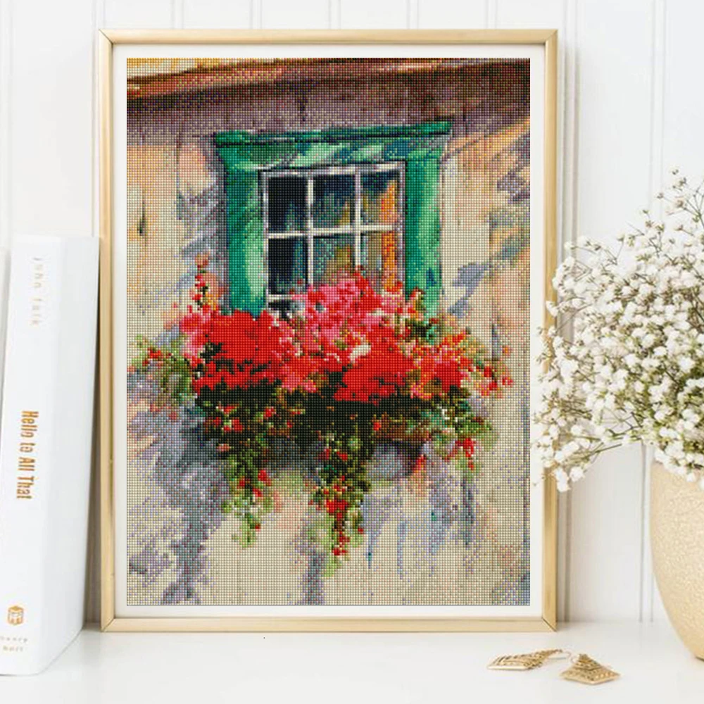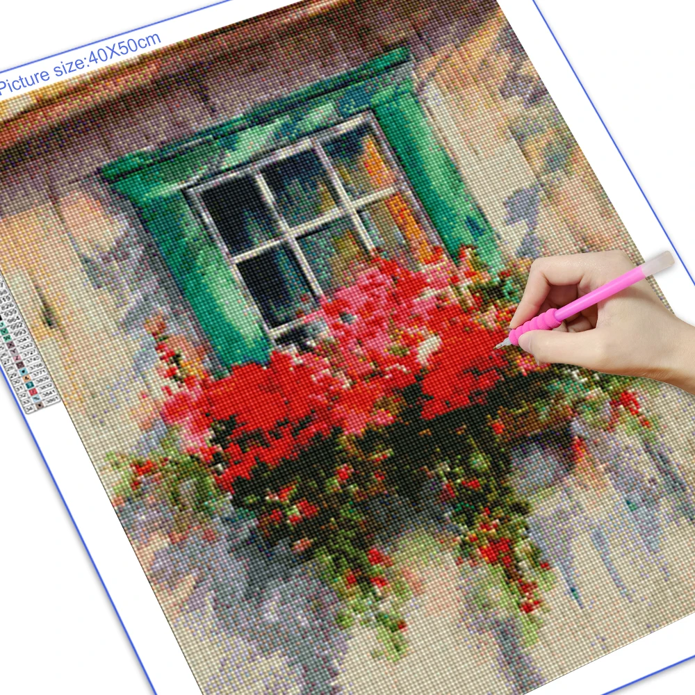 Набор для алмазной живописи сделай сам, картина из искусственных страз с полным квадратным окошком, цветочный пейзаж, бисер, украшение для дома