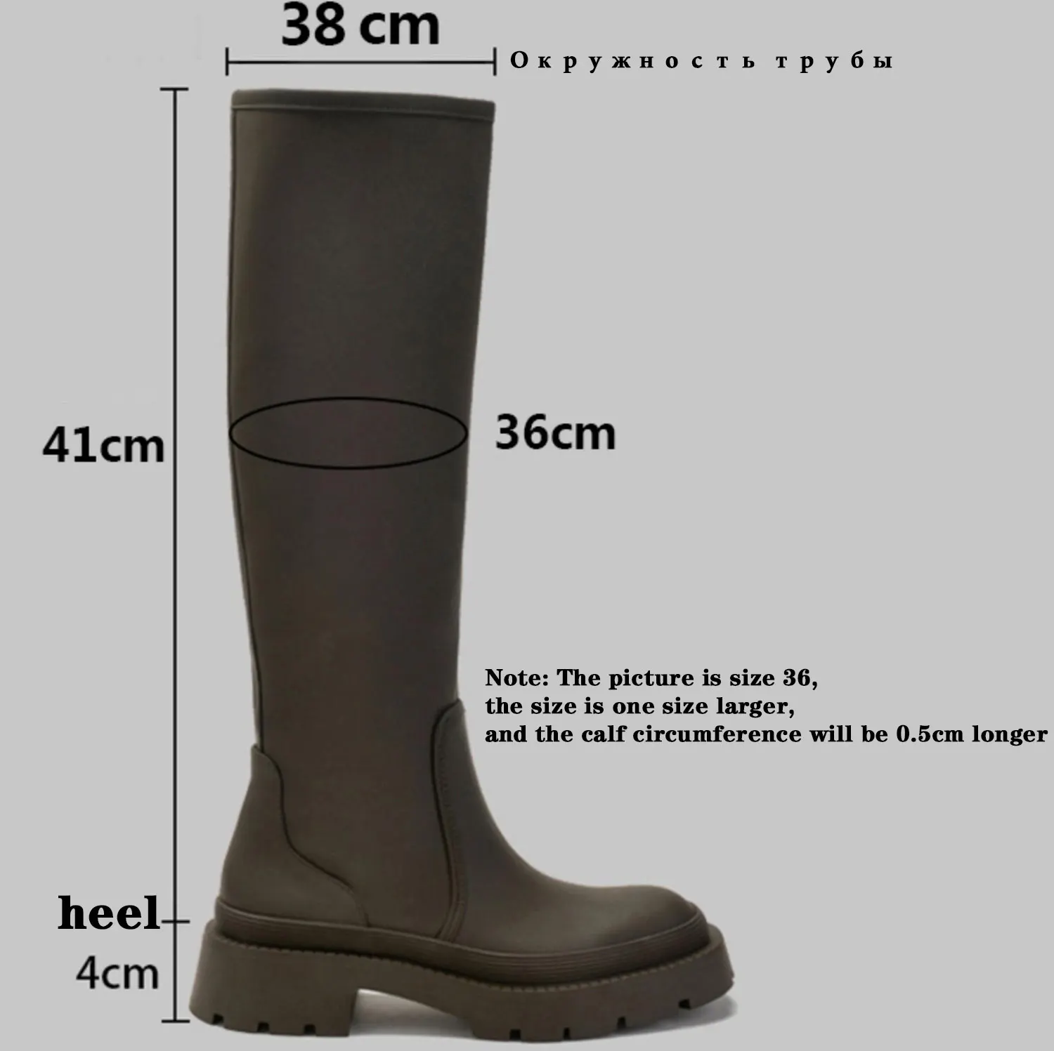 Женские повседневные сапоги до колена, на платформе, с круглым носк...