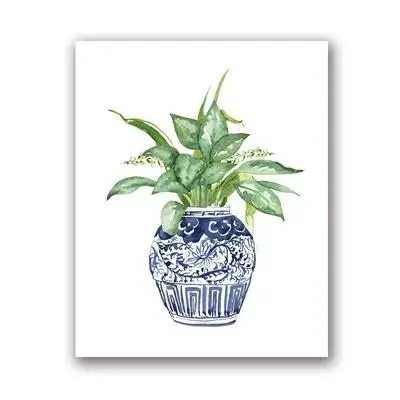 Фарфоровая банка имбиря для художественной печати в китайском стиле, китайская ваза мин, Настенная картина на холсте, постер, акварель, Цветочный декор