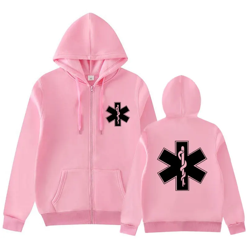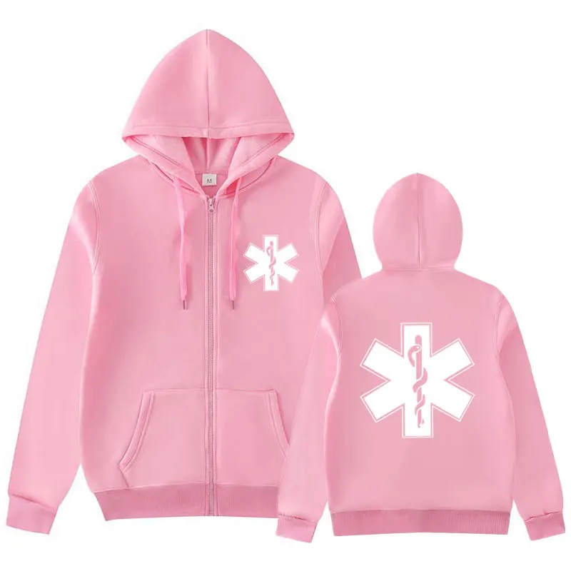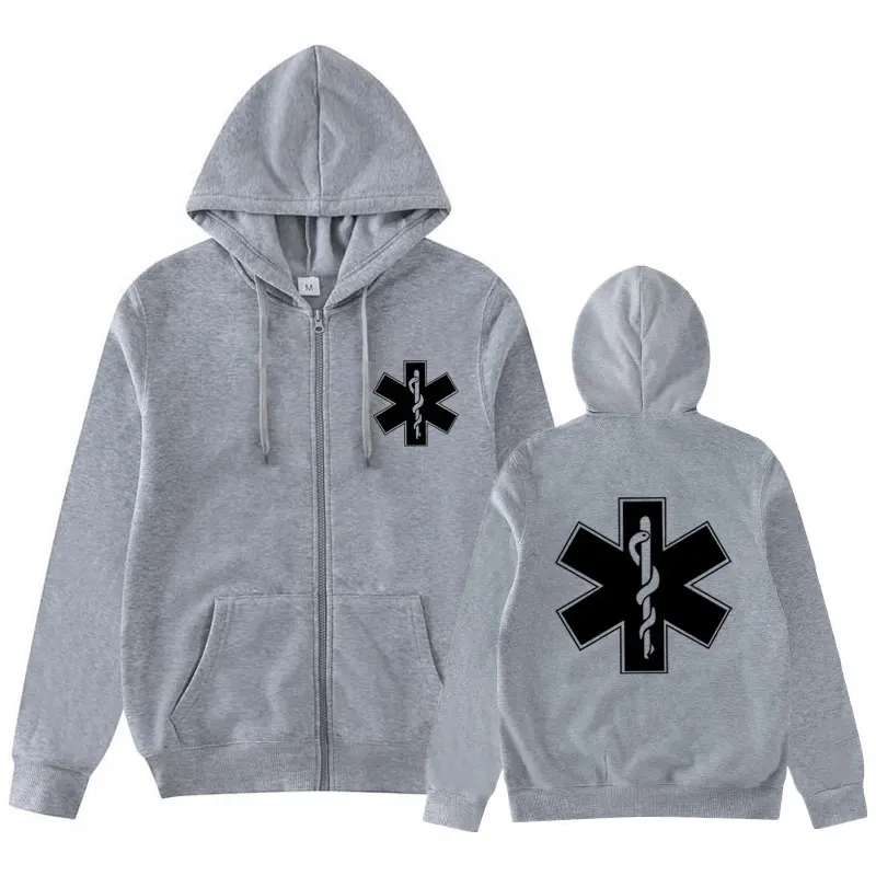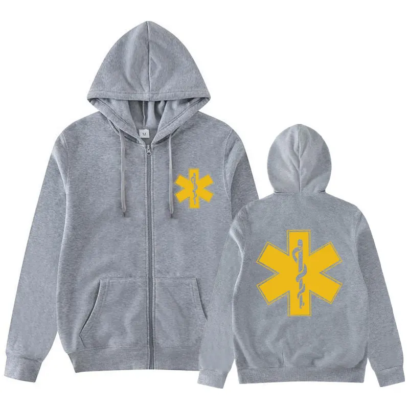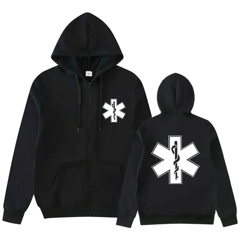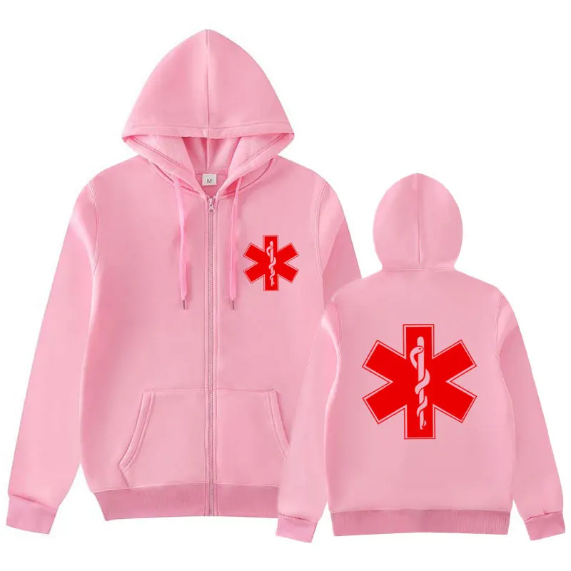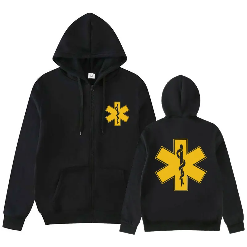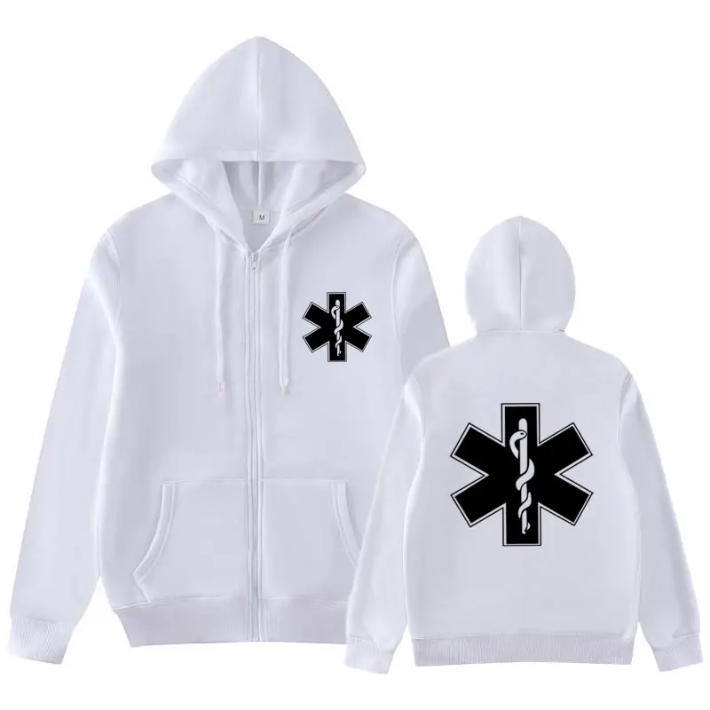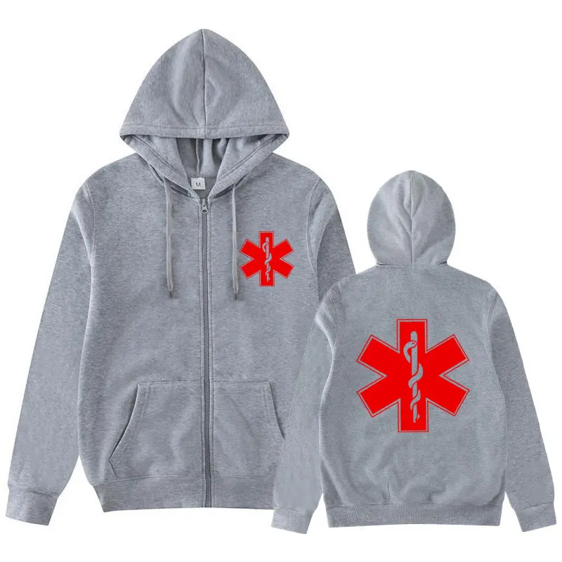 Кардиган с капюшоном на молнии для мужчин и женщин, флисовый свитшот с длинным рукавом, с принтом скорой помощи, для осени и зимы