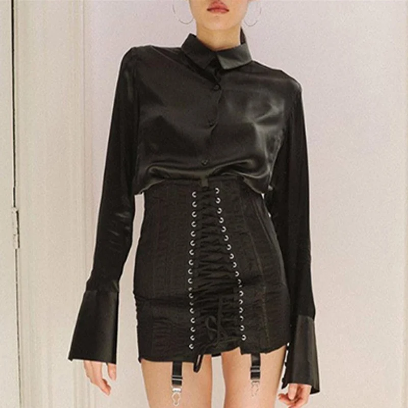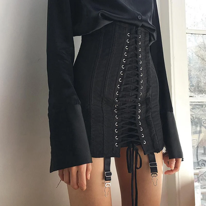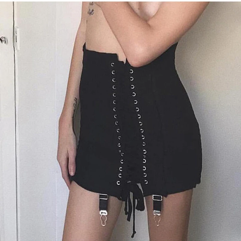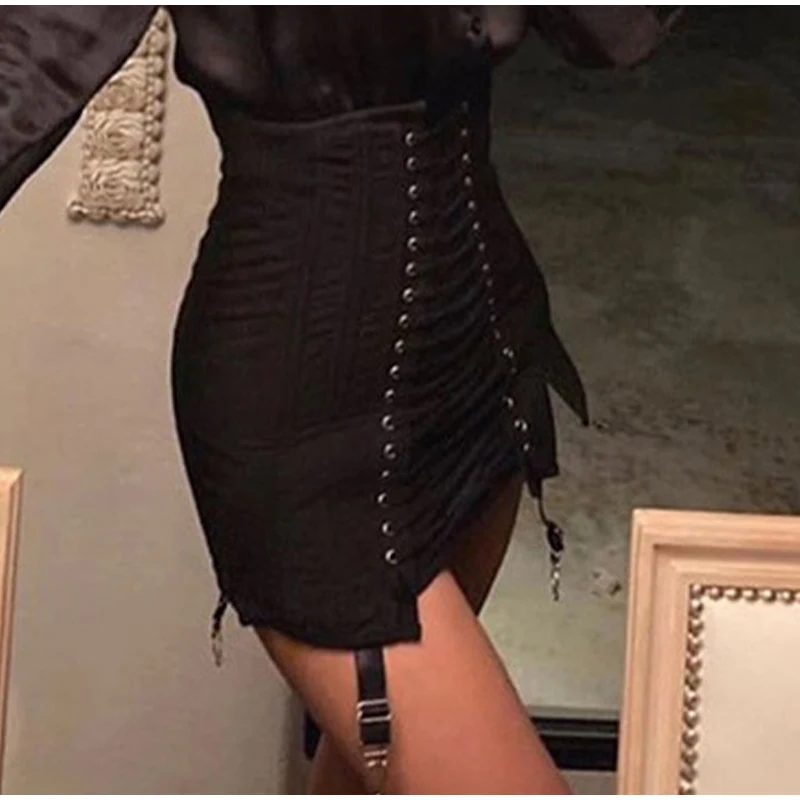 Женская винтажная мини-юбка, Готическая облегающая юбка составного кроя с высокой талией и шнуровкой, в стиле панк, Y2K, 2021