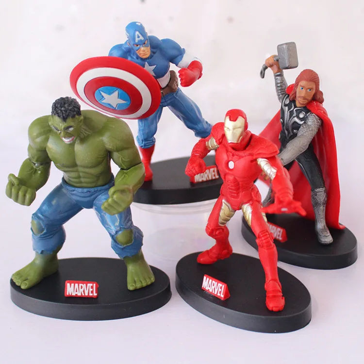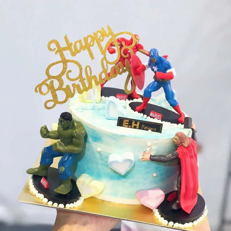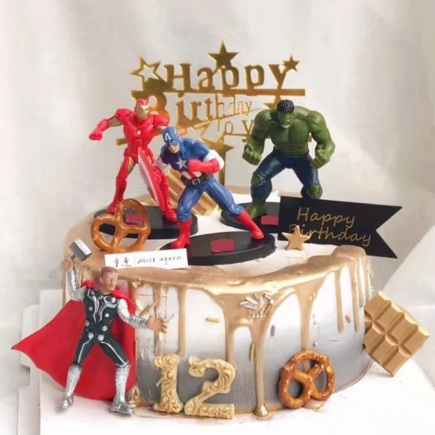 4 шт.компл., украшение для торта на день рождения с супергероями, Халк, Капитан Америка, железный человек вечерние ринка, торт, мини-фигурка, украшение, игрушка для детей, подарок