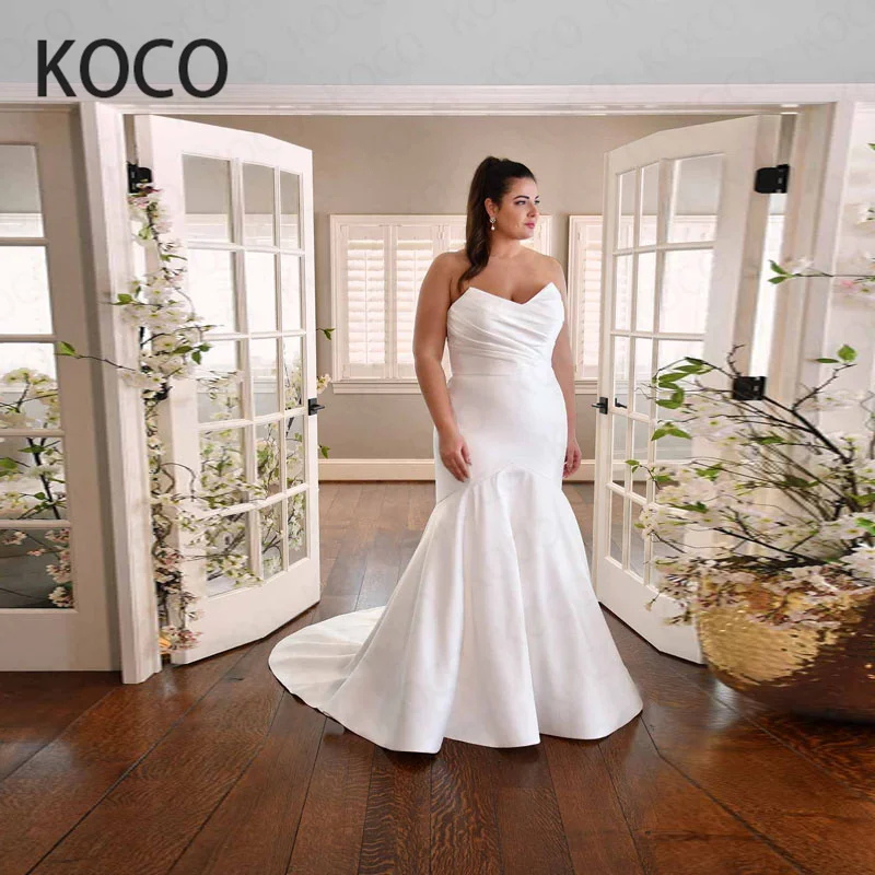 Простое, милое, атласное, Пляжное свадебное платье русалки, элегантное, Vestido De Novia Civil, плюс Siz