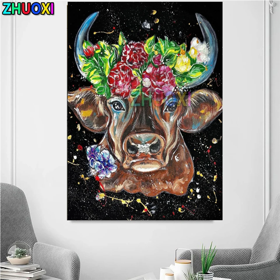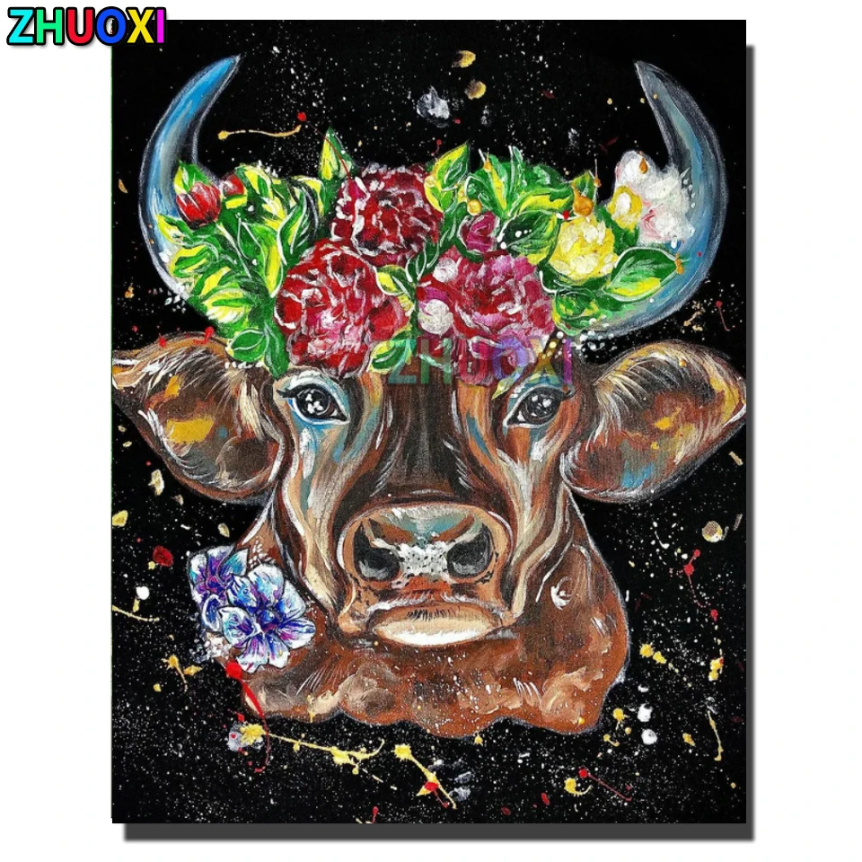 Картина-пазл стразы из квадратных страз, вышивка крестиком с изображением животных, быка, цветов