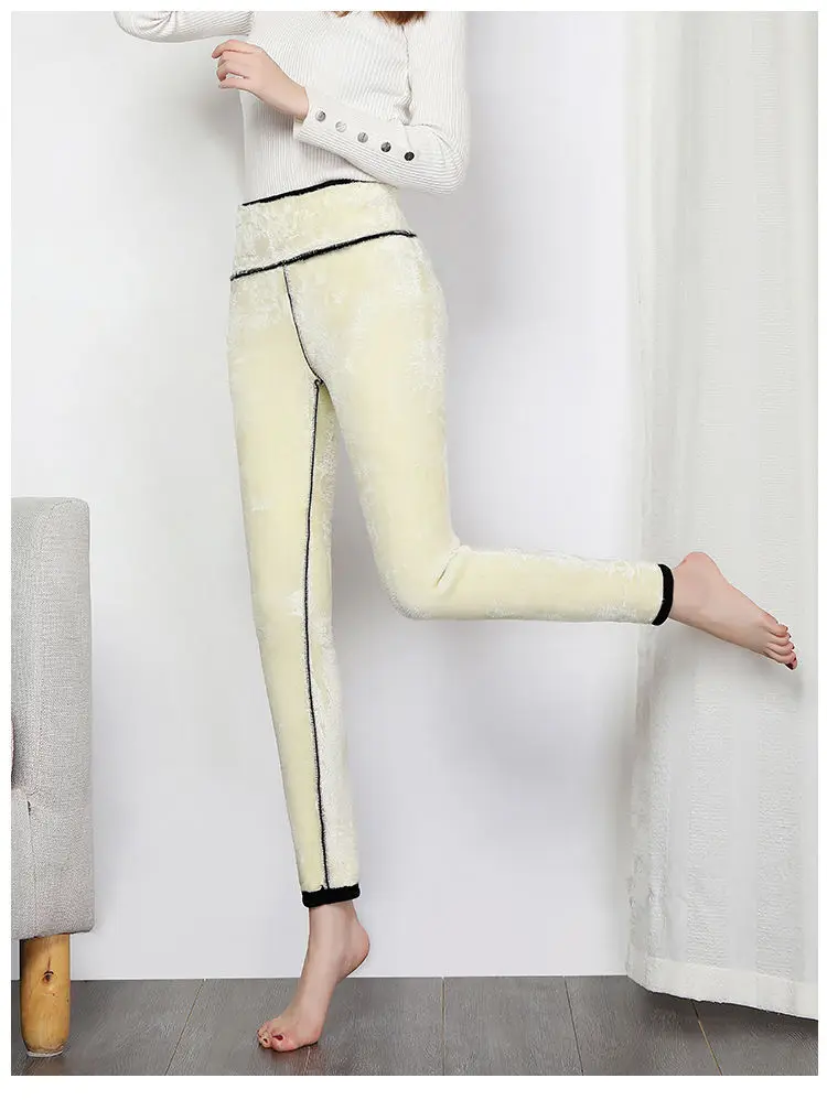 Женская одежда, яркие теплые бархатные леггинсы из ягненка с высоко...