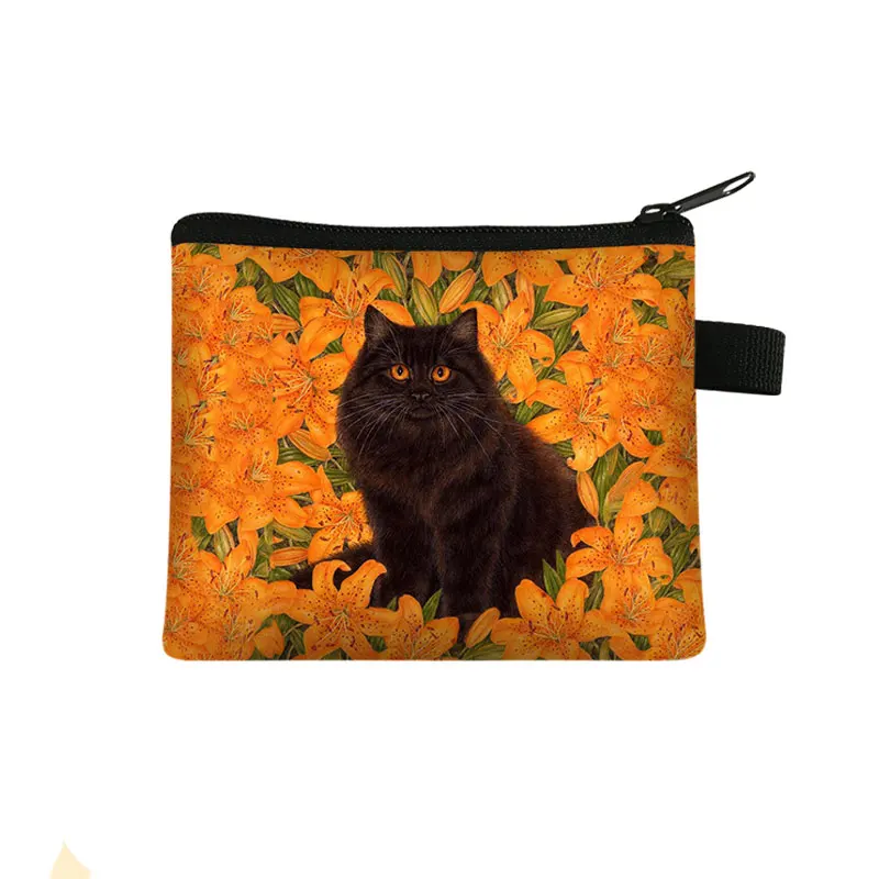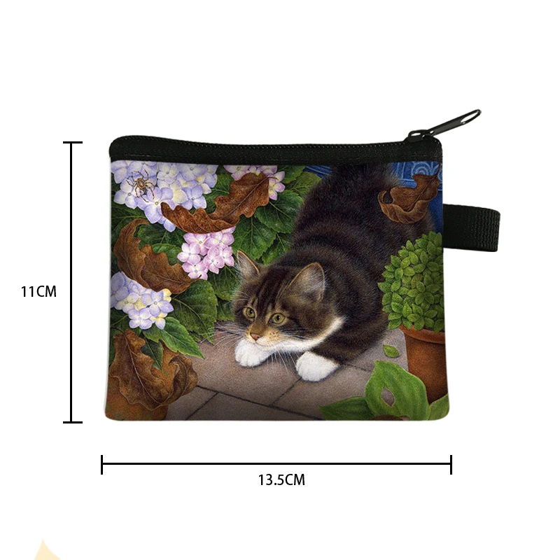 Кошелек для монет с принтом кота из мультфильма, женский кошелек, мини-держатель для карт, кошелек на молнии, кошелек хранилище, сумка для девочек