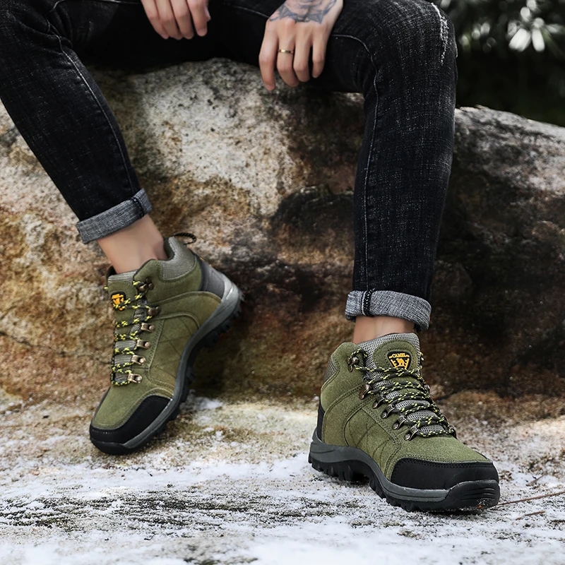 Зимняя мужская походная обувь, уличная Нескользящая Спортивная мужская обувь для пересеченной местности, походная тренировочная обувь, армейский зеленый цвет, мужская спортивная обувь