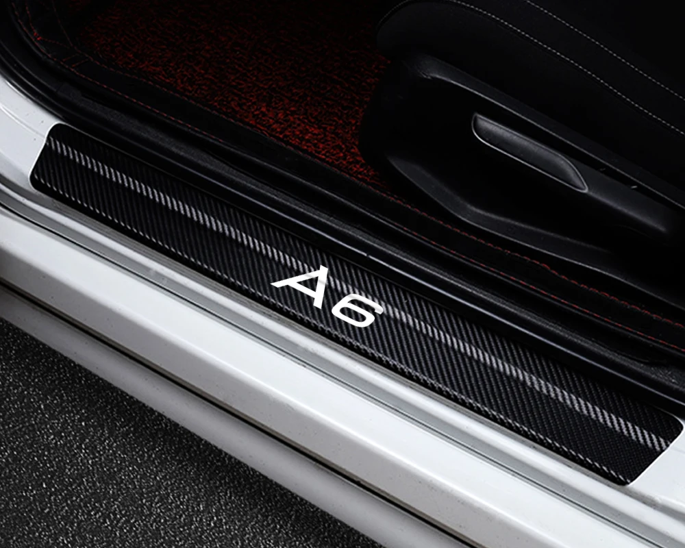 4 шт., защитная пленка из углеродного волокна для порога автомобиля Audi Sline A3 8p 8v 8l A4 b8 b6 b9 b7 A6 c7 A5 Q5 Q3