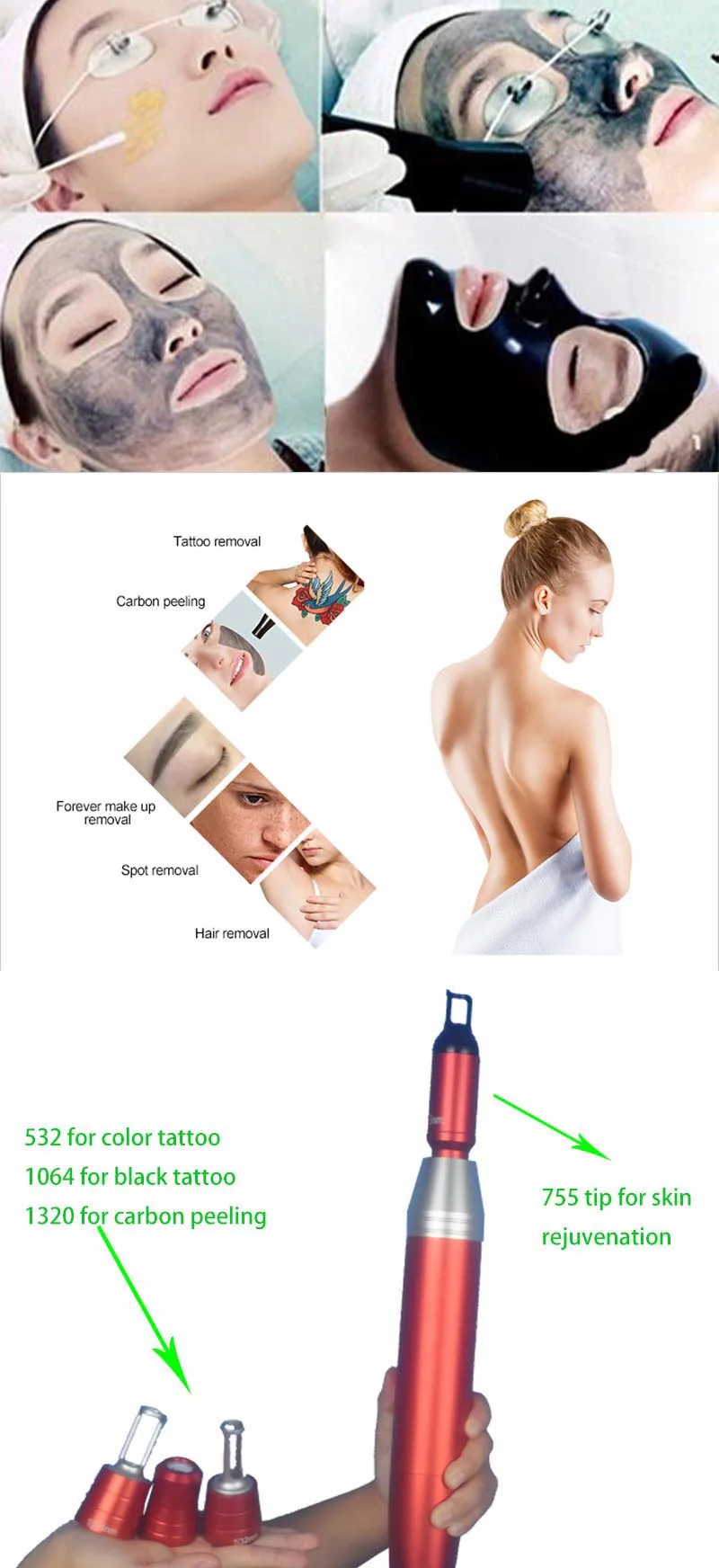 2) головки для лечения 1064нм и 532нм используются для удаления татуировок и веснушек.