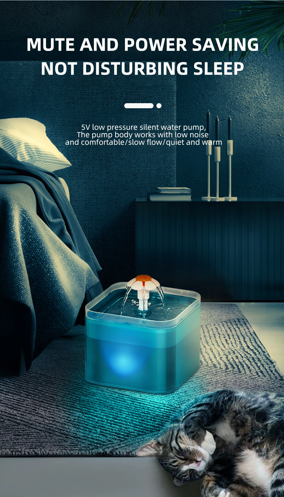 Я люблю это, я рекомендую это 100%! Быстрая доставка и хорошо упакованный! Все прибыло в идеальном состоянии, мои кошки любят это, они сразу же смогли пить! Это также очень тихо. Свет тусклый, приятный на вид.