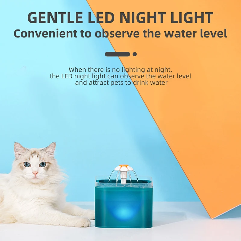 Автоматический фонтан для кошек со светодиодной подсветкой, емкость 2 л
