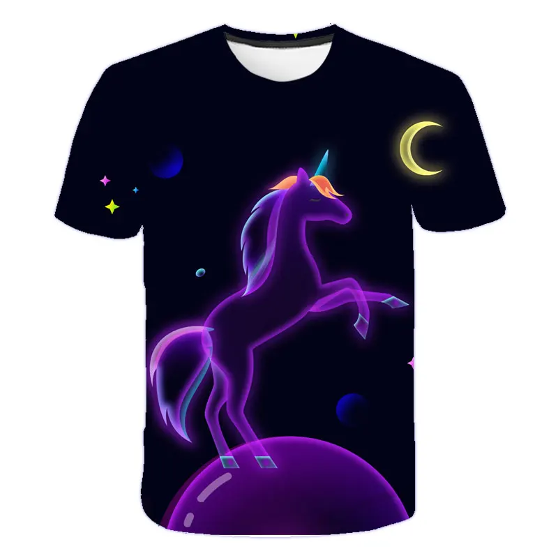Футболка с единорогом для девочек, летняя футболка с 3D принтом, женская, 3,4,5,6,7,8,9,10,11,12,13,14, лет