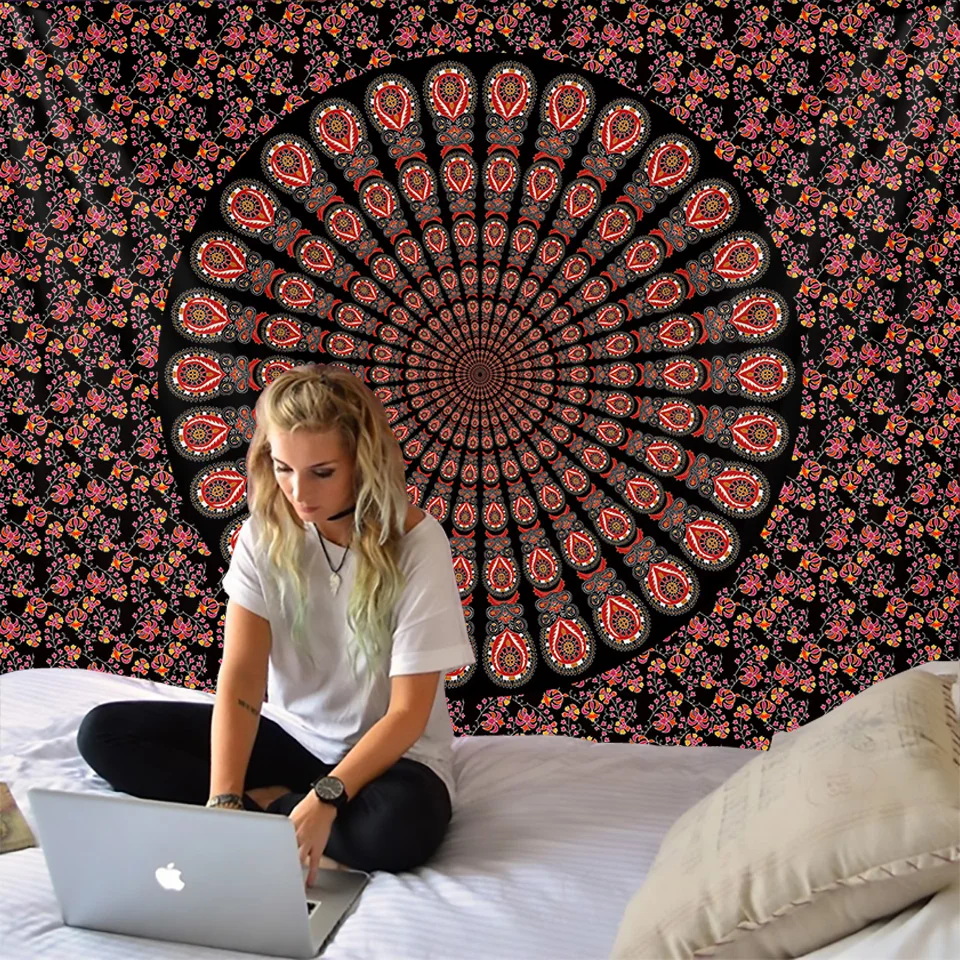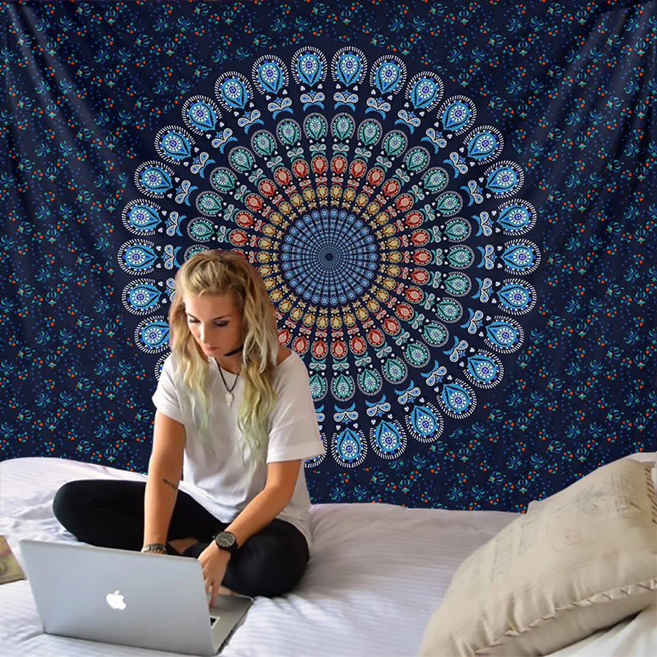 Индийский гобелен с мандалой, Настенный декор в стиле бохо, психоделический хиппи ночной гобелен с Луной, настенный ковер с мандалой