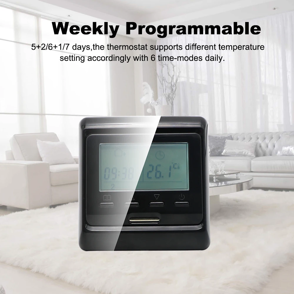 1) Еженедельный программируемый: может установить 5 + 2 шесть периодов, удобный, удобный и экономичный.2) Блокировка для детей: во избежание неправильного использования детьми.3) Функция памятиЗапомните все настройки после внезапного отключения питания. Когда питание включено снова, вам не нужно сбросить его.4)Вставные и внешние два датчика. 3 м кабель внешнего датчика включен. (Только для 16A электрического сердечника)5)Подходит для различных видов электрической системы отопленияТермостат подходит для нагревательного кабеля, нагревательного коврика, нагревательной пленки и других устройств электрического отопления. 6)Функция WifiТермостат wifi может управляться мобильным приложением, где бы вы ни находились.