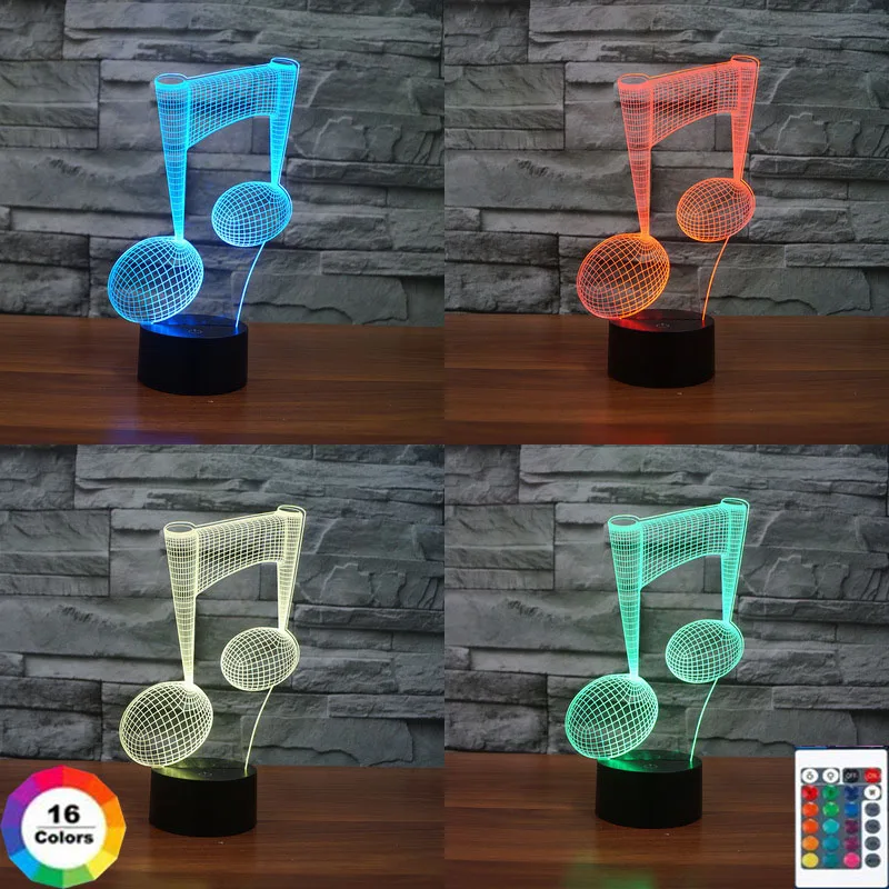 Новейший детский ночник с 3d иллюзией, голограмма музыкальных нот, светильник со светодиодным сенсорным датчиком, цветные прикроватные лампы с питанием от Usb и аккумулятора