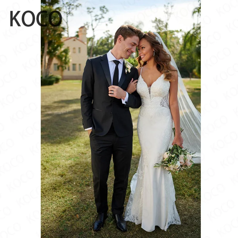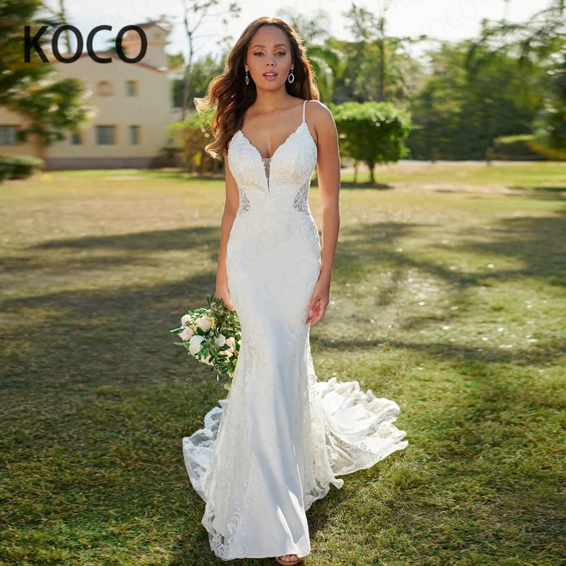 Простое, атласное, v-образный вырез, Пляжное, свадебное платье русалки, элегантное, аппликация, шлейф, Vestido De Novia Civil
