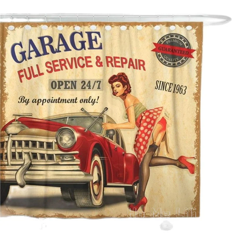 Декоративная занавеска для душа от Ho Me Lili, винтажная занавеска для гаража в стиле ретро, Классическая вывеска для девушек и механиков, комплект для ванной комнаты с крючками