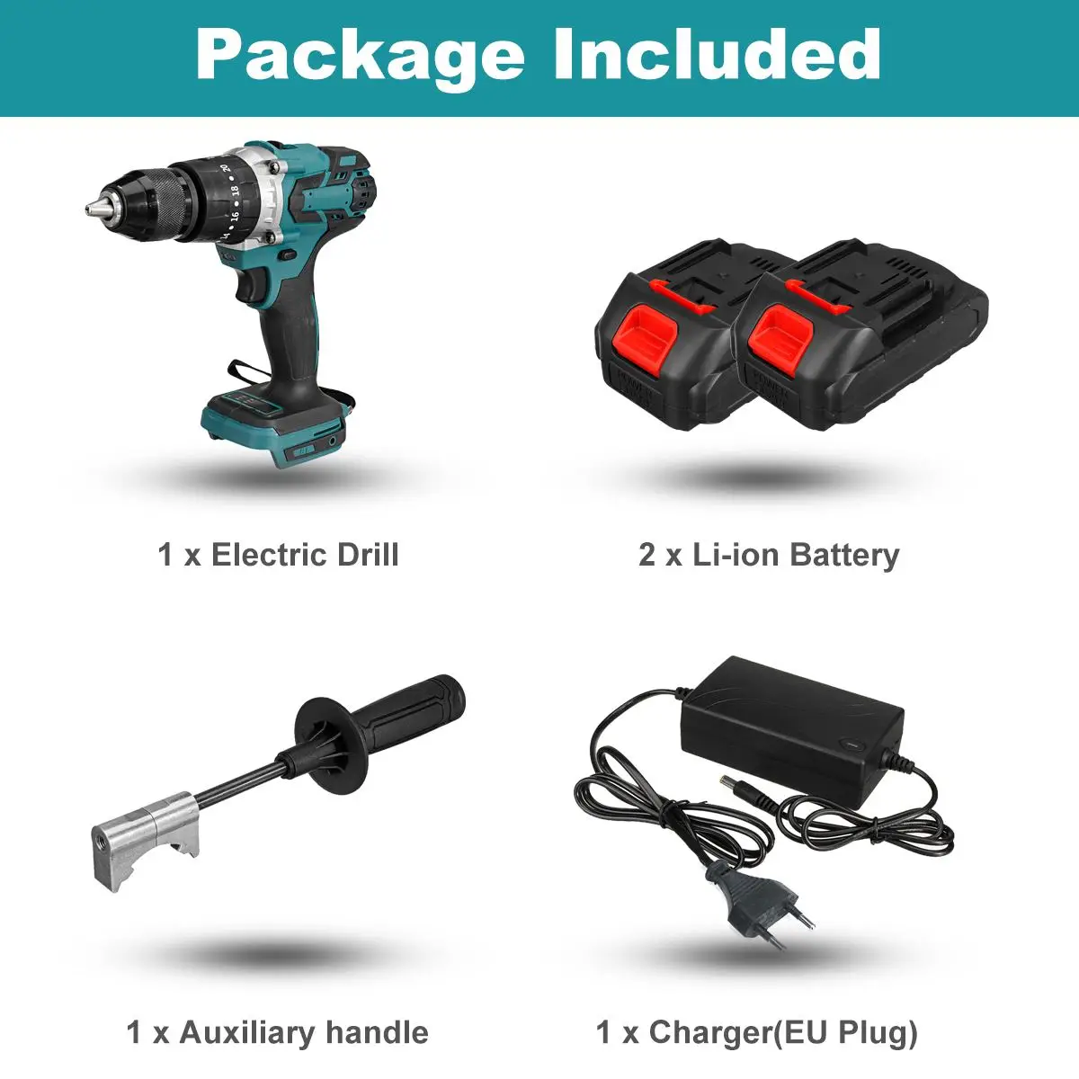 Беспроводная ударная дрель с ручкой, перфоратор 18 в 13 мм, перфоратор, ударная дрель 520N.m, отвертка 18 в, 2 аккумулятора
