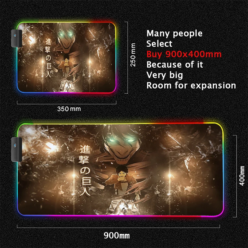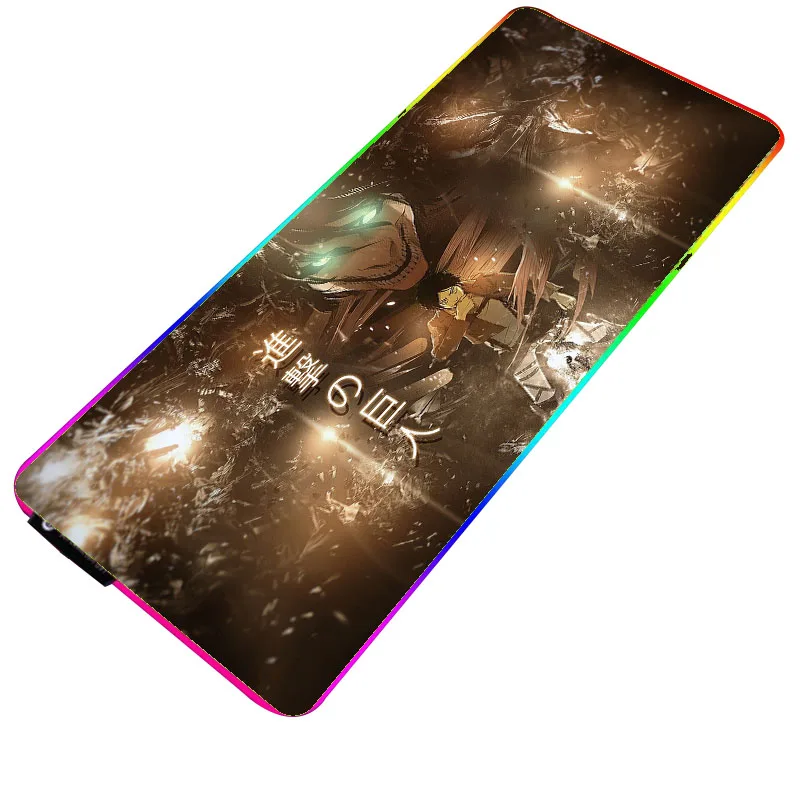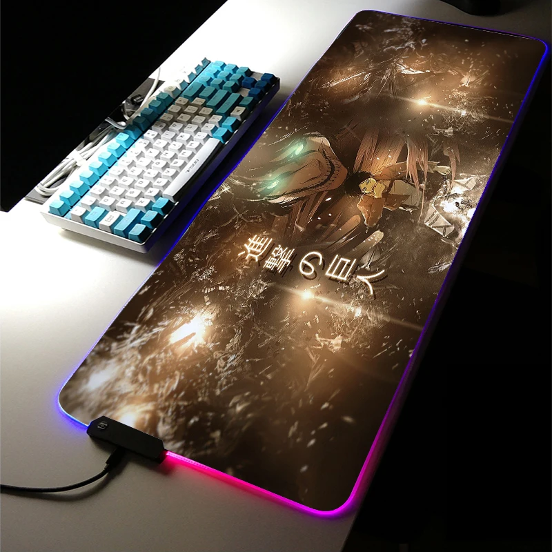 Большой коврик для мыши со светодиодной RGB подсветкой, коврик для мыши с аниме атакой на титанов, комнатный коврик Эрена, коврик для клавиатуры Levi, игровые аксессуары для игр, LOL