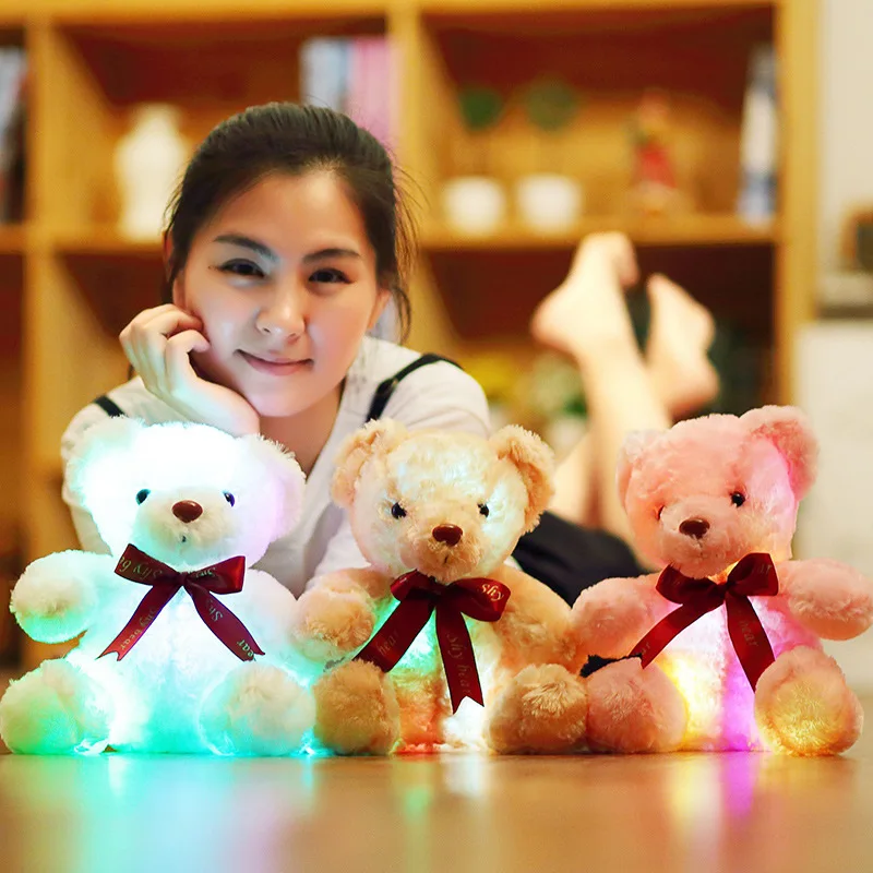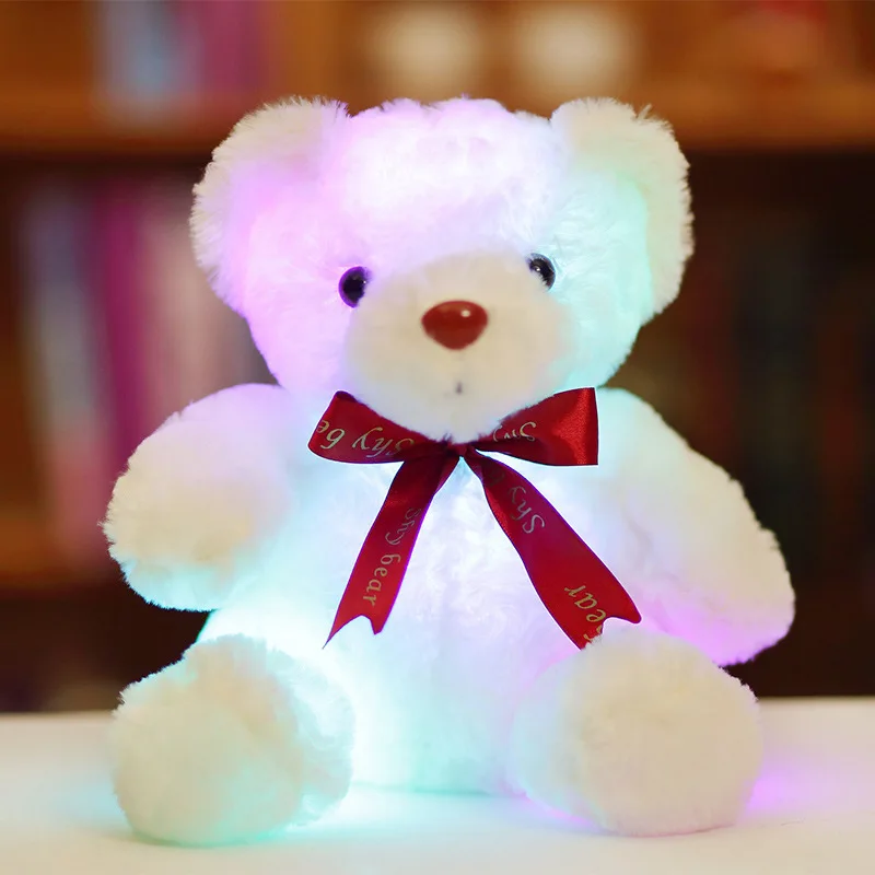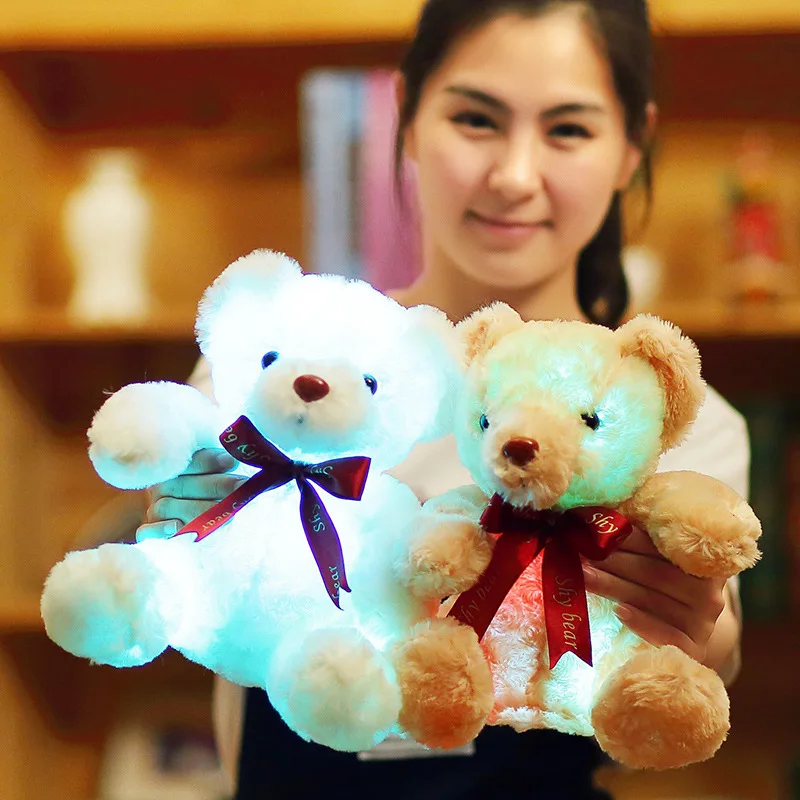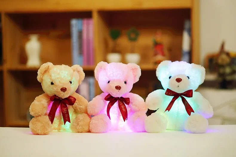 Креативный светильник ящийся светодиодный мишка тедди, мягкие животные, плюшевая игрушка, красочный светящийся Рождественский подарок для детей, подушка 25 см