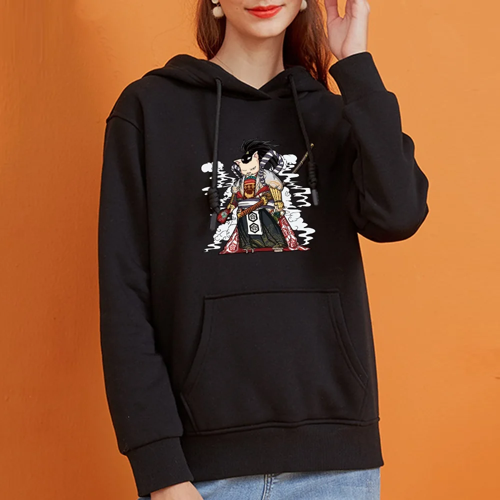 Толстовка мужская и женская осенне-зимняя из полиэстера и хлопка индивидуальная куртка с длинным рукавом и принтом самурая парная