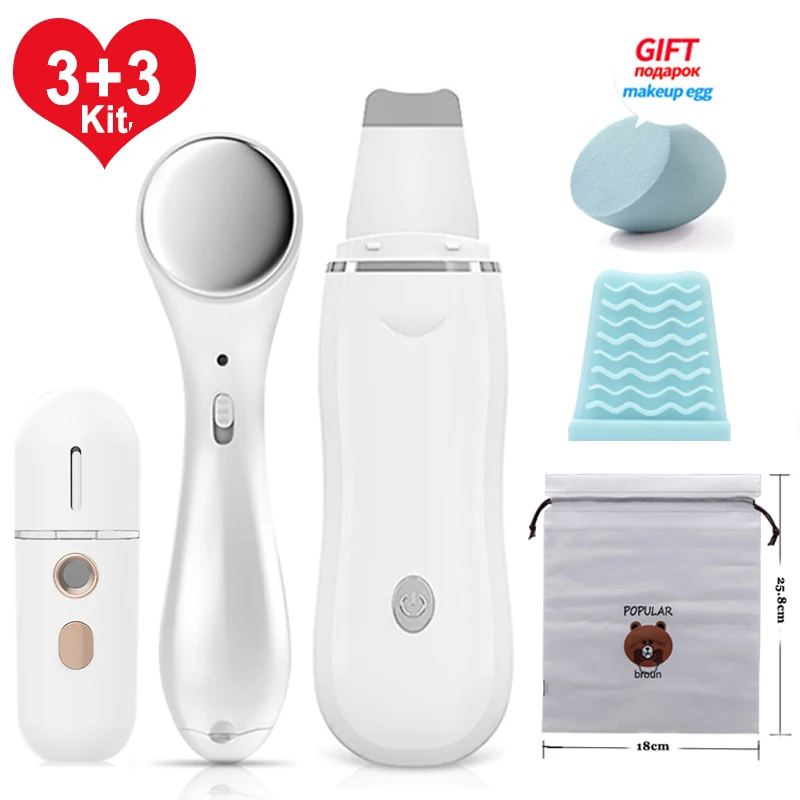 Ультразвуковой скруббер для кожи, средство для удаления черных точек, массажер для лица, комплект 3 + 3, очиститель для лица, очиститель пор, глубокий уход за лицом, звуковой пилинг, устройство