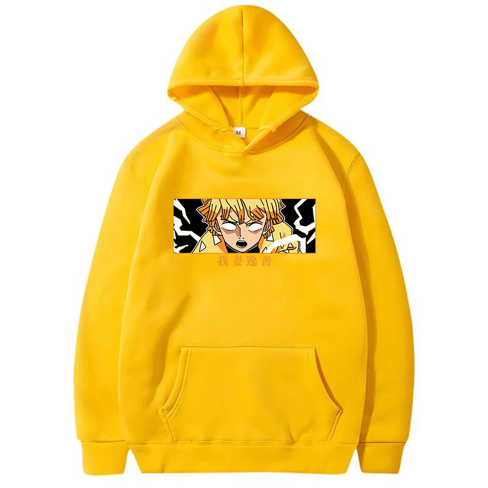 Толстовки с капюшоном из аниме рассекающий демонов, Kimetsu No Yaiba, толстовки Zenitsu Agatsuma, женские пуловеры, толстовка, флисовая толстовка