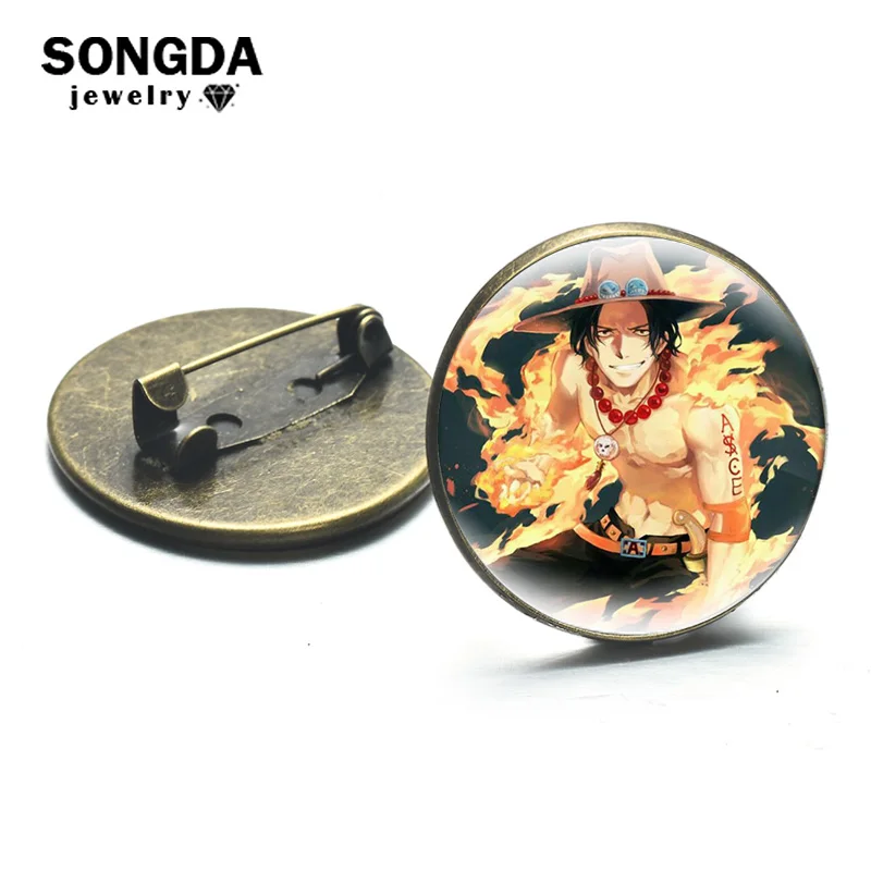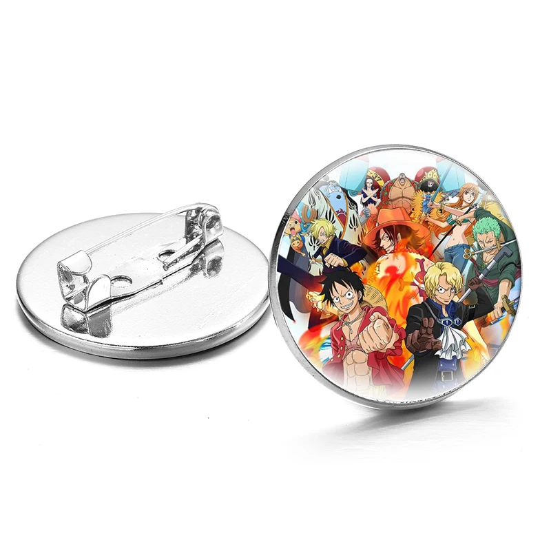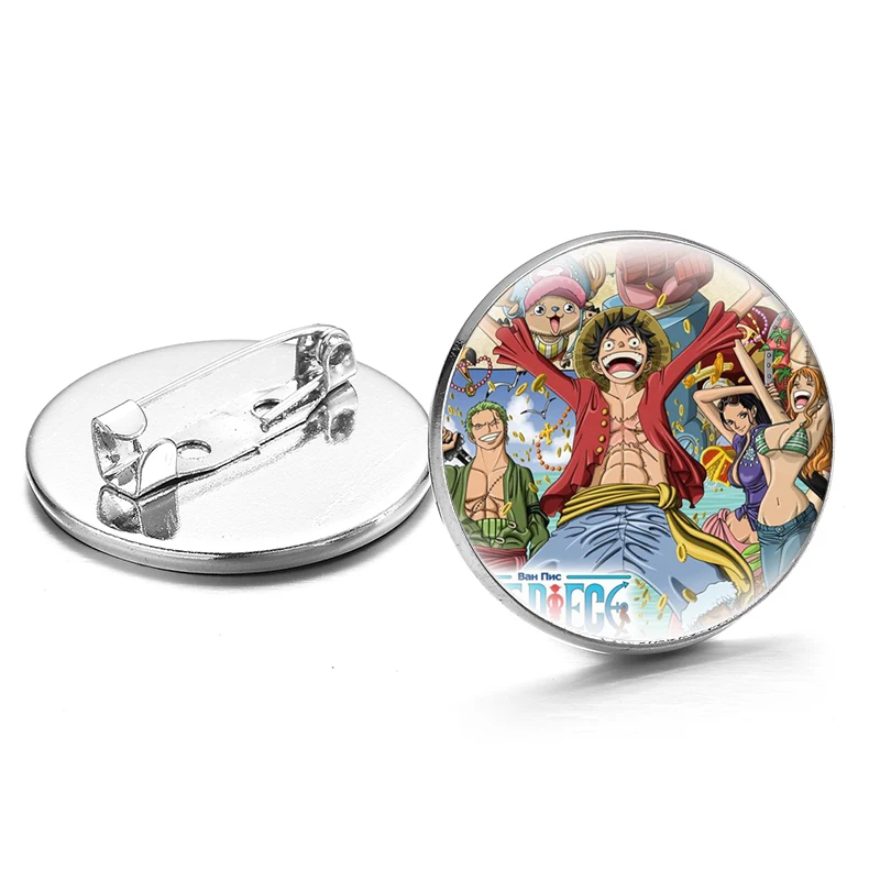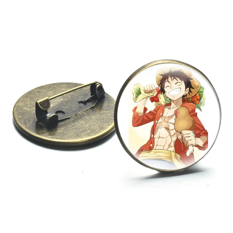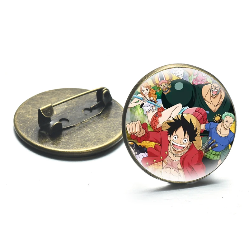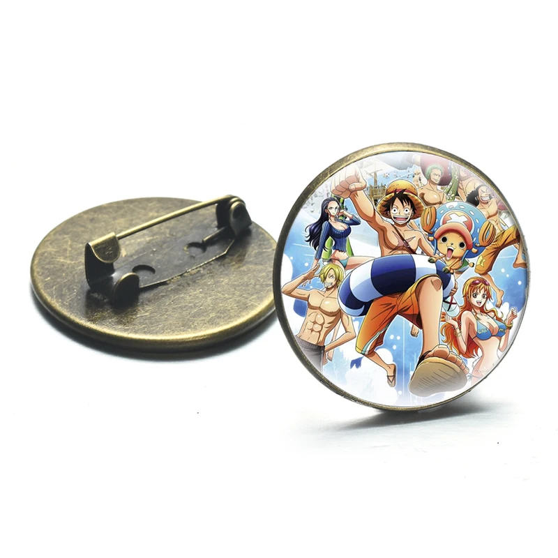 Коллекция аниме, цельные броши, мультяшная фигурка, крутые булавки Luffy Zoro Sanji, стеклянные круглые металлические значки на лацкан, значок, украшение, подарок