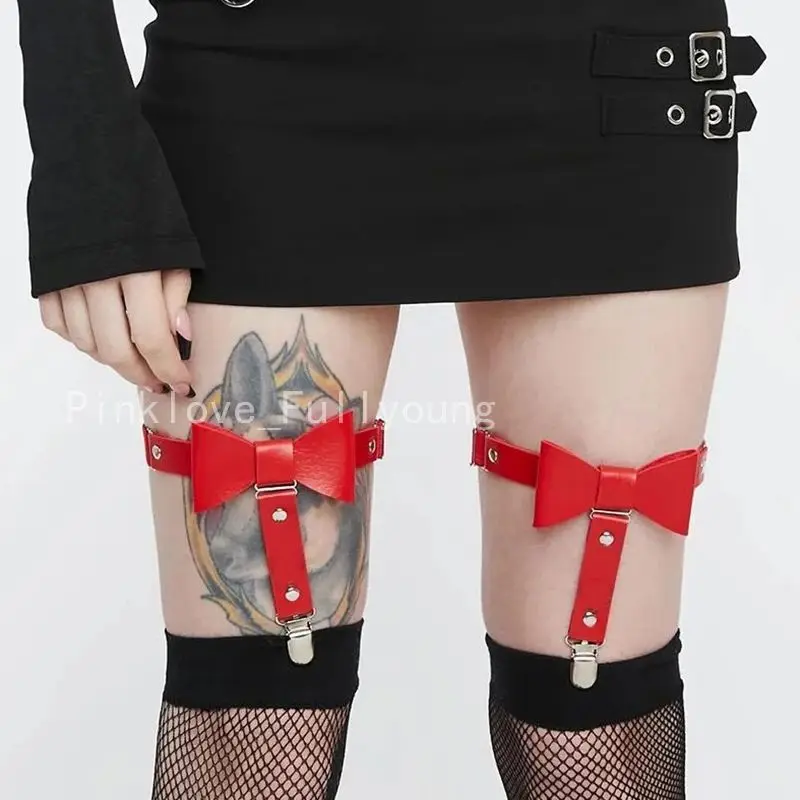 Розовый кожаный бант подвязка в форме сердца с металлической пряжкой бондаж для бедра сексуальная женская портупея в готическом стиле нижнее белье подтяжки в стиле панк кольцо для ног