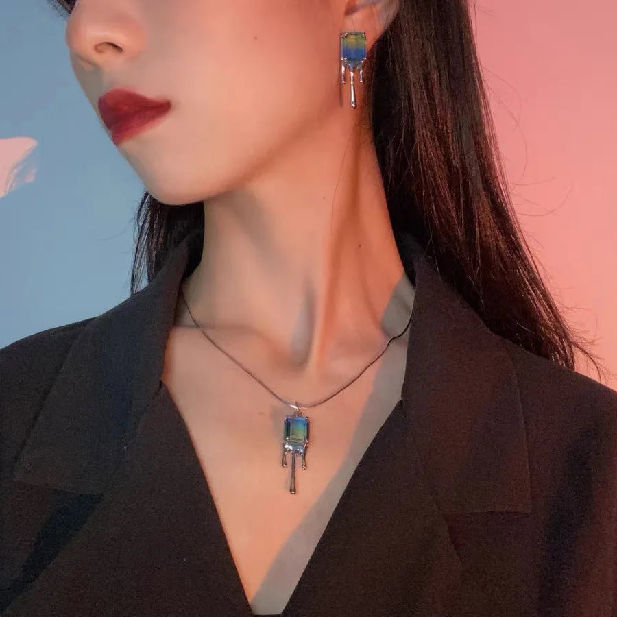 Ожерелье с кулоном из полимерной смолы, женское, разноцветное