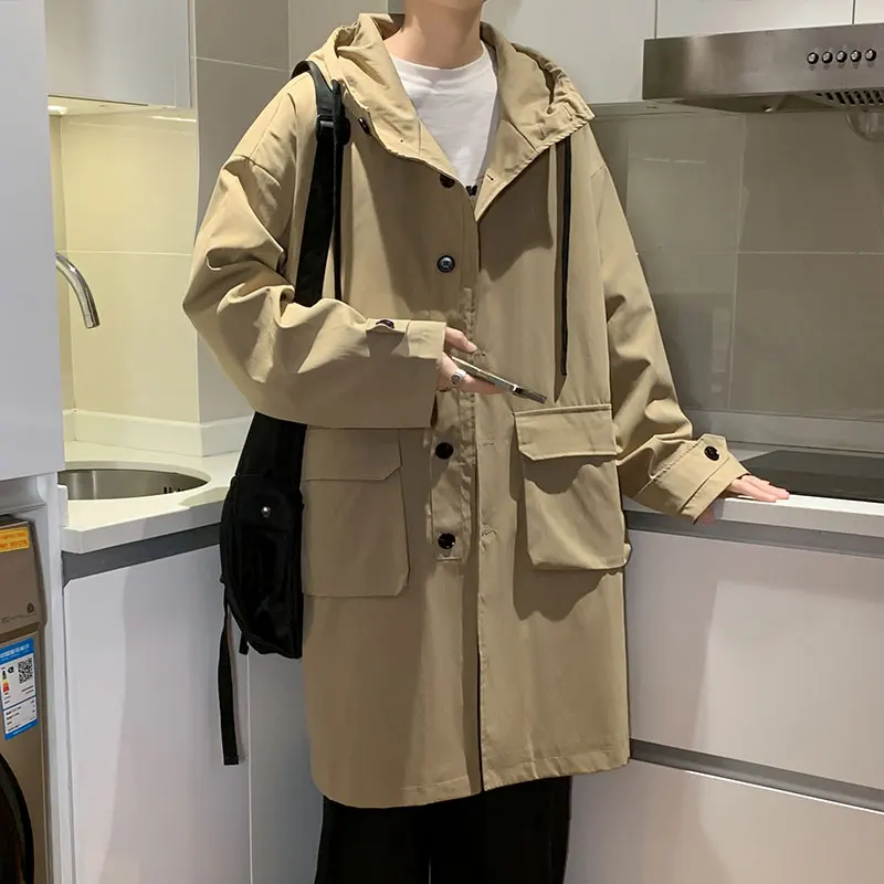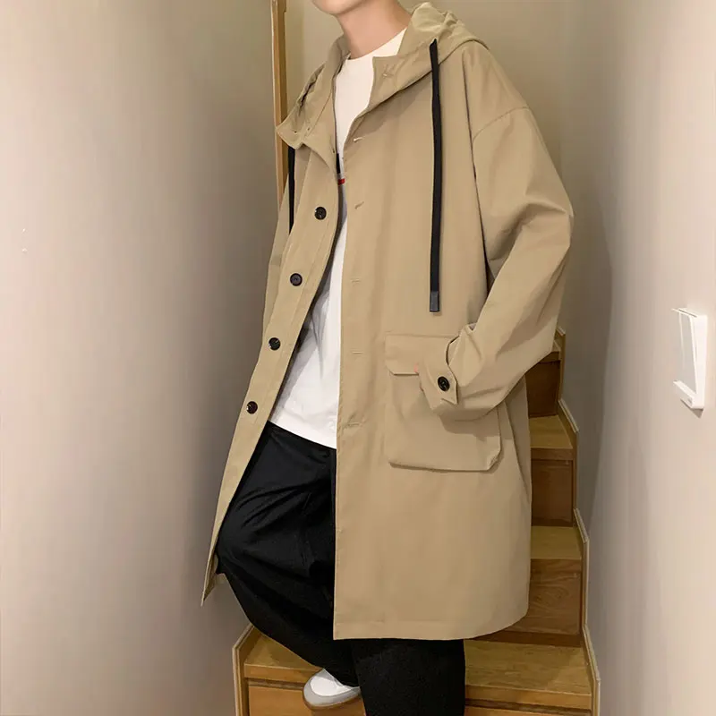 Тренчкот LEGIBLE 2021 мужской, весна-осень, Повседневная Свободная ветровка, Мужская однотонная длинная куртка с капюшоном для мужчин