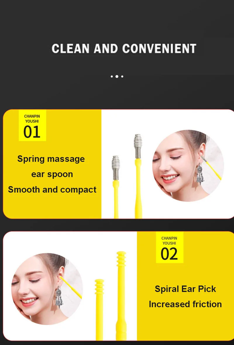 7 шт./компл. очиститель ушей инструмент для удаления ушных восков ABS для чистки ушей многоразовый инструмент для удаления воска для чистки ушей пружинная ложка для чистки ушей