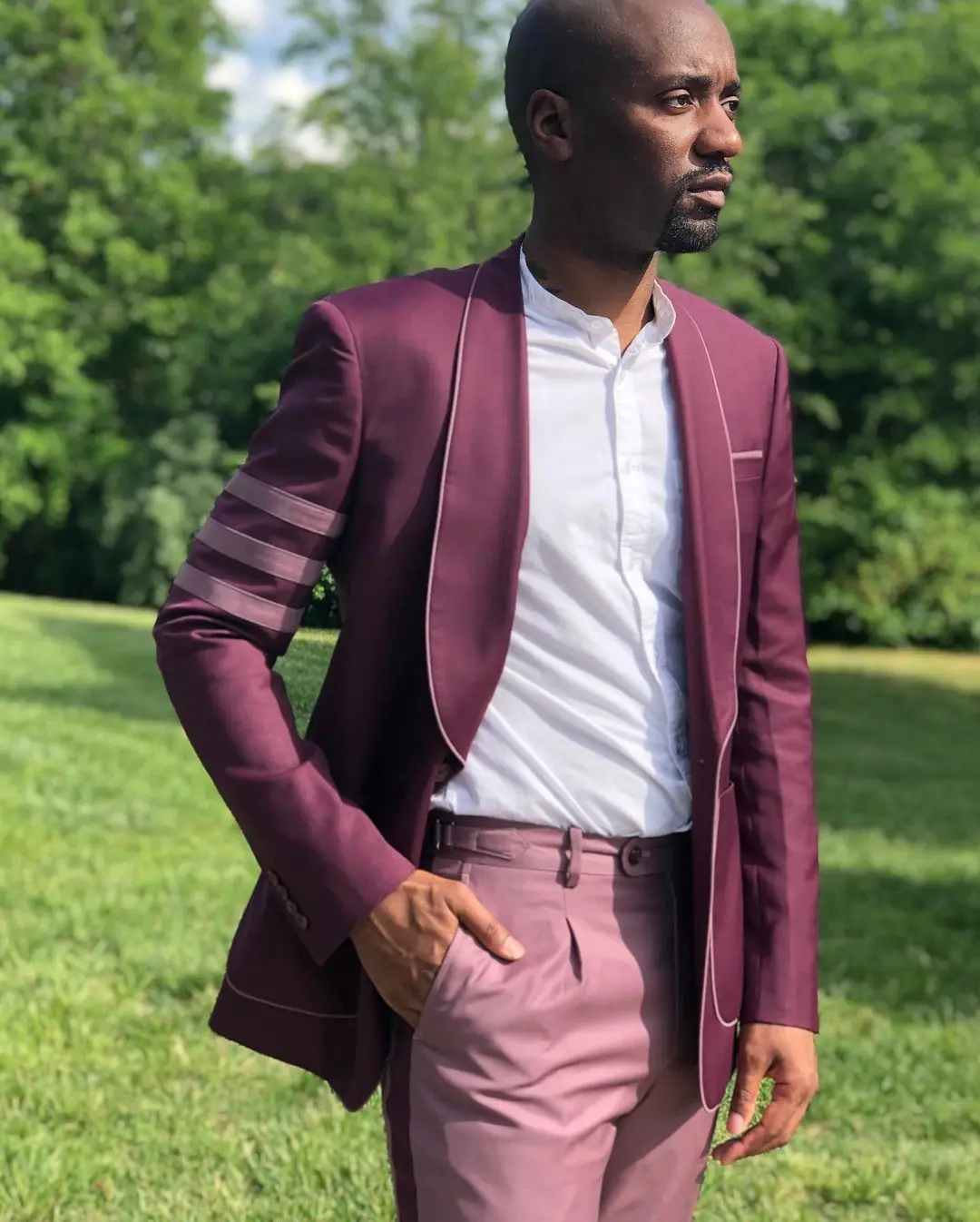 (Куртка + брюки) Индивидуальный Пошив роскошный фиолетовый лоскутный мужской костюм комплект из 2 предметов свадебный наряд для вечеринки мужской 2021 Jscket Coat на заказ