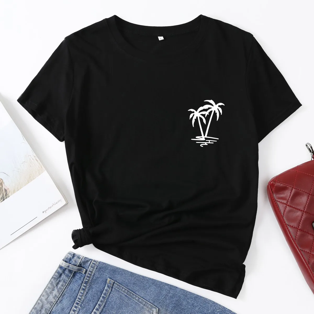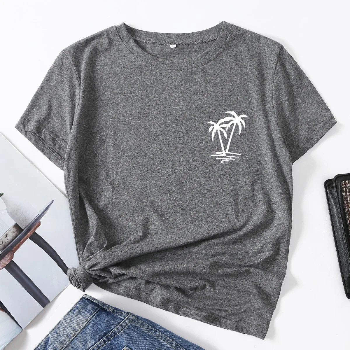 Футболка женская летняя с принтом кокосового дерева и круглым вырезом