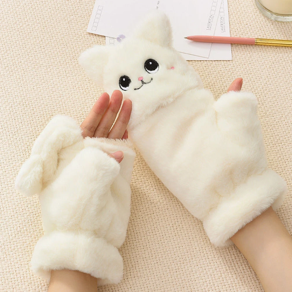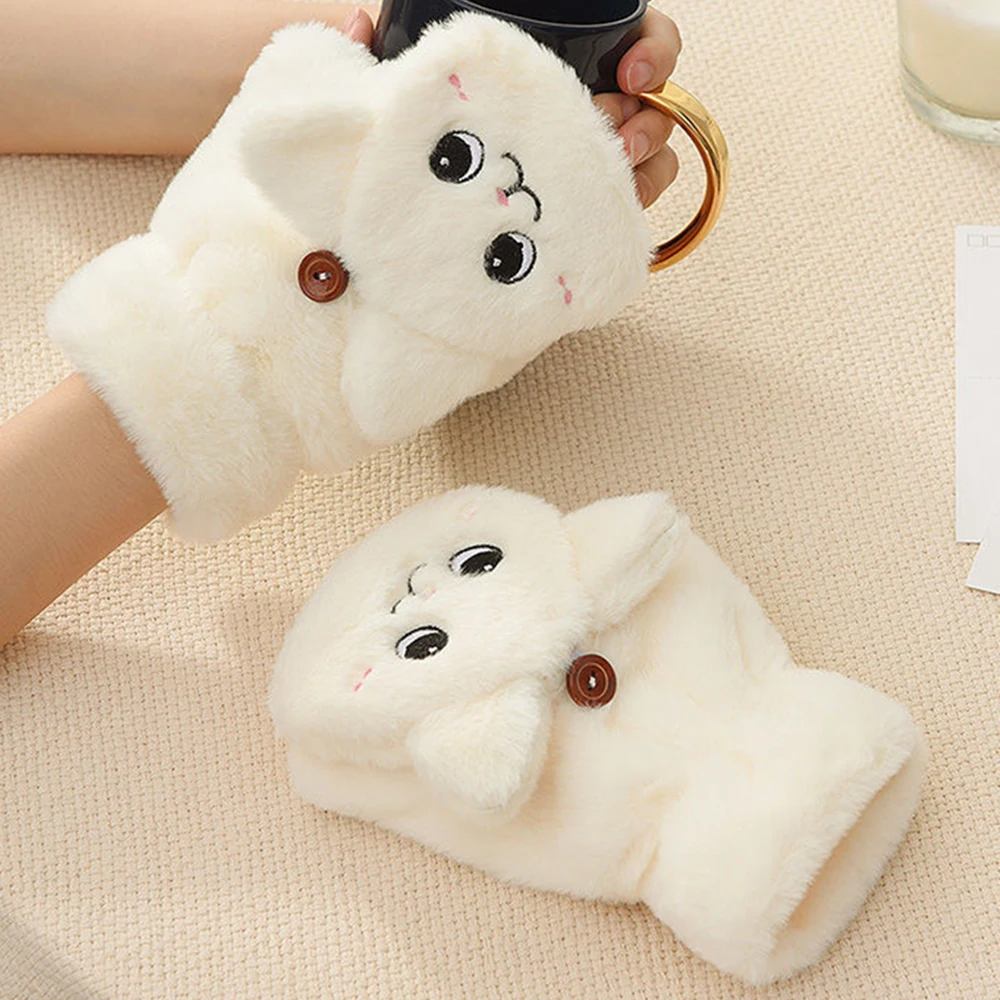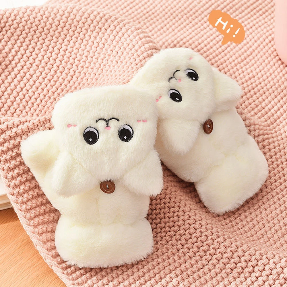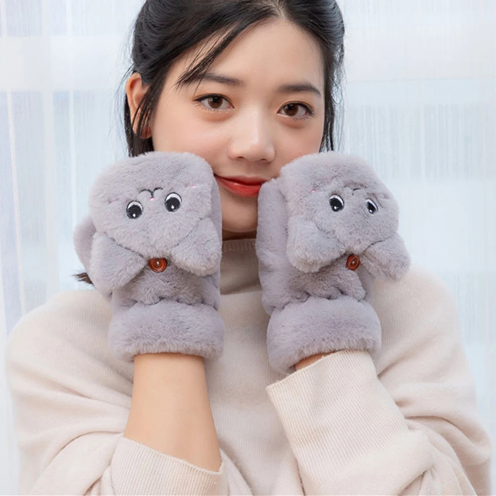 Женские зимние варежки из меха кролика, Плюшевые Теплые Мягкие плотные перчатки без пальцев для девочек, Новинка