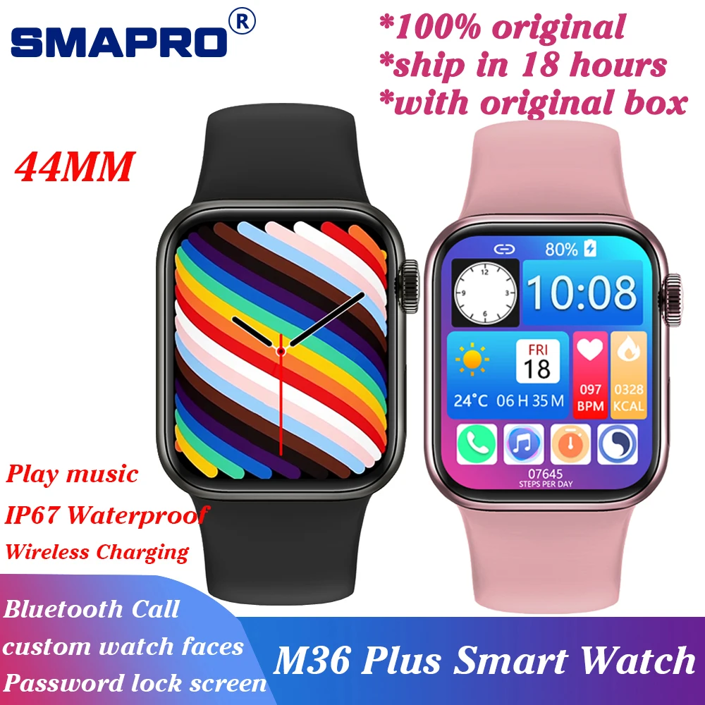 Смарт-часы M36 Plus, 7 дюймов, 44 мм, IP67, водозащита 1,8 дюйма, бесконечный экран, фитнес-трекер, Bluetooth, звонки, беспроводное зарядное устройство, Смарт-часы iwo