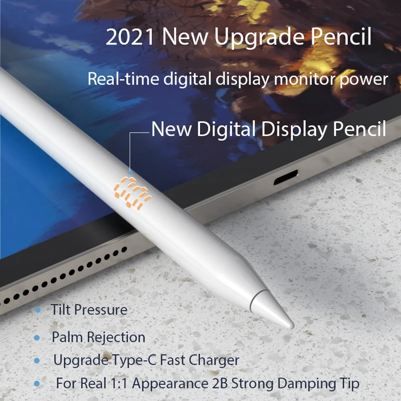 Стилус цифровой с индикатором мощности для iPad 2021-2021, iPad 2018 Pro 11 10,2 Air 4 с наклоном, Apple Pencil 2 1, новинка 12,9